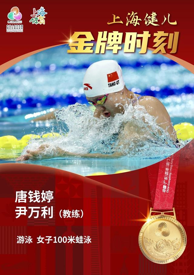 在刚刚结束的第十五届全国运动会女子100米蛙泳决赛中,上海运动员唐钱婷以1分05秒36斩获金牌。另一名上海选手宋梓欣收获铜牌。