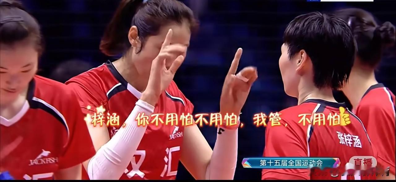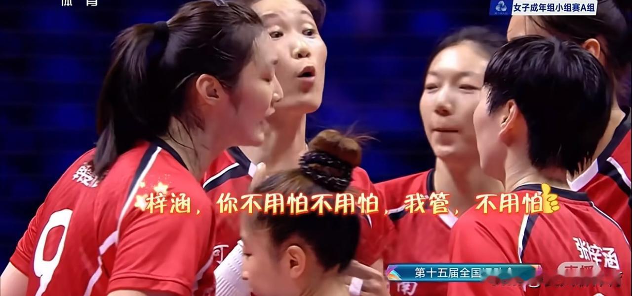 有朱婷在,队员们就很安心!朱婷就是中国女排这批主攻手的偶像啊!年轻主攻,看到朱婷姐姐,很想表现自己!像北京女排的董禹含,赛后接受央视采访就提到婷姐在,所以自己打得比较激动,打出了属于自己的风格!小董确实打得很好,河南女排就没拦住她的进攻!你看河南队的小队员就比较幸福,朱婷鼓励年轻二传梓涵:你不用怕不用怕,我管,不用怕!要是朱婷能在国家队再多打两年,带带像董禹含、吴梦洁、庄宇珊这样年轻的主攻手,这批年轻队员会成长得更快的!