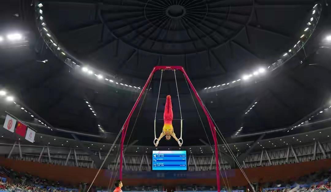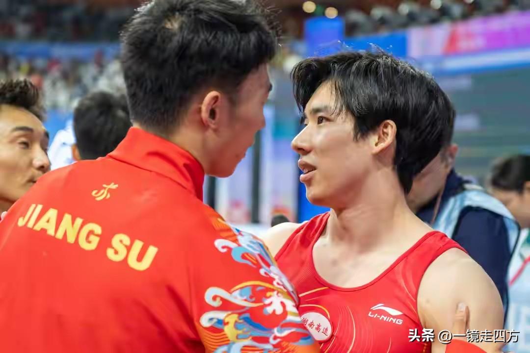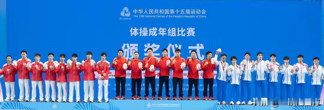 第十五届全运会体操男子团体决赛最晚结束,资格赛排名前两位的湖南队和江苏队展开激烈争夺,卫冕冠军江苏队在六个项目中都稳定发挥,而湖南队在第一项自由操张博恒出现出界失误,在跳马项目中,小将杨定锴又出现了落地失误,影响了队伍得分,最终,整体表现更稳定的江苏队以 328.957 分成功夺金,成功卫冕,湖南队以 1.933 分之差屈居亚军,浙江队以317.427获得铜牌,东道主广东队以316.325分位列斩获第四。