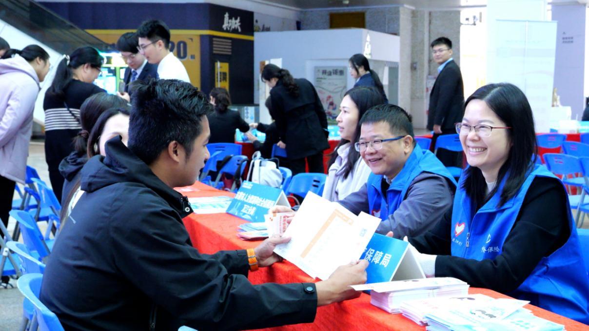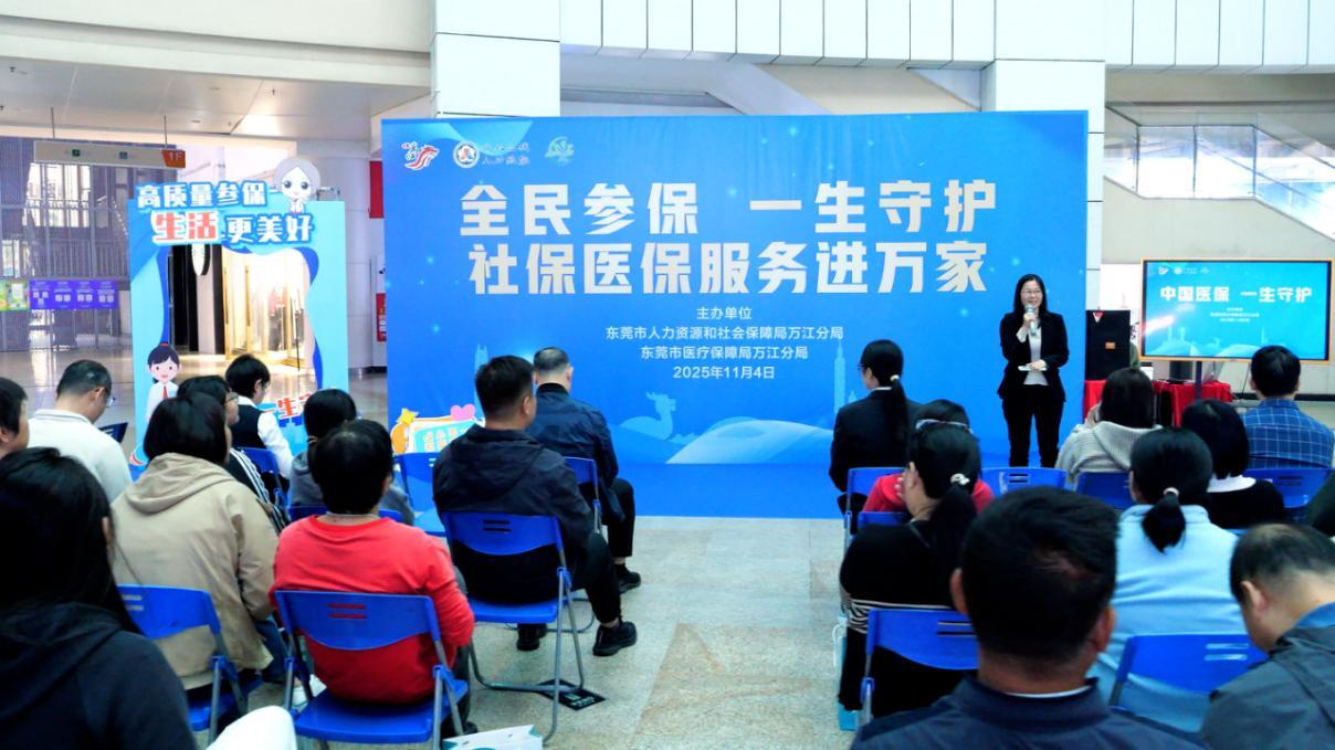 为推进万江街道高质量全民参保,提升医保公共服务智慧化水平,维护人民群众合法权益,11月4日下午,万江医保分局联合“社银合作”银行在万江华南摩尔商圈开展“全民参保,一生守护”社保医保服务进万家主题宣传活动。