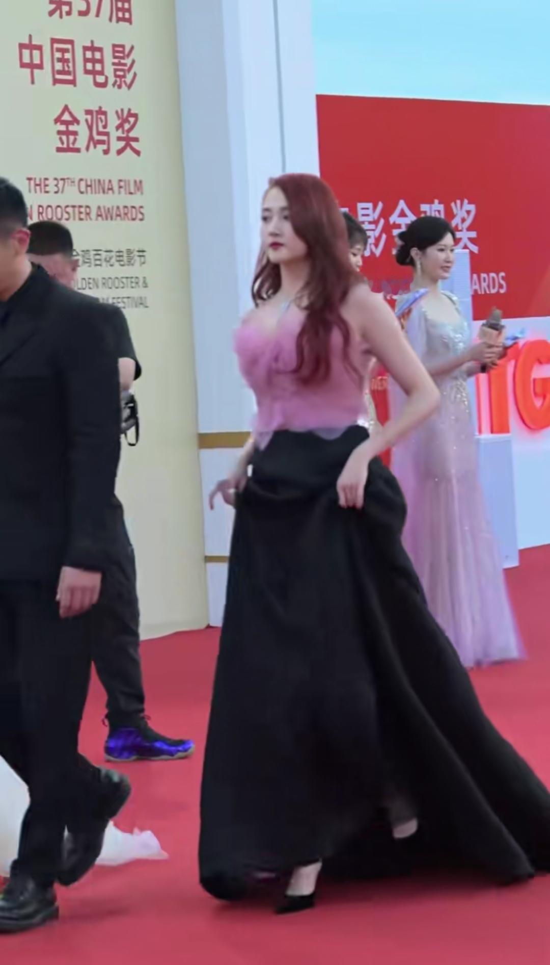 关晓彤第37届金鸡奖红毯造型,她上身穿着粉色上衣,满满的少女感,仿佛把春天穿在了身上。下搭一条黑色长裙,又增添了几分优雅和大气。粉与黑的经典搭配,在她身上碰撞出了不一样的火花! 关晓彤本身就有着高挑的身材和出众的气质,再加上这精心搭配的礼服,在红毯上那就是妥妥的焦点,一整个惊艳住所有人。她自信地走着,每一步都散发着魅力,感觉周围的光芒都被她吸引过来了。 家人们,你们觉得她这次在金鸡奖红毯上的造型怎么样呀?