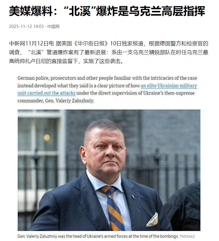 “北溪”背后的大水鱼,终于被揪出来了!德国查明,扎卢日内大将,竟然是“北溪”真正的黑手,曾是泽连斯基最大对手!但事情真的有这么简单吗?   先说说德国所谓的“铁证”,《华尔街日报》说,德国联邦刑警总局查了三年,从租船的记录、通讯设备,一直查到车牌,最后靠人脸识别和超速摄像头拍的照片,锁定了几个乌克兰潜水员。   调查里说,这事儿是乌克兰精锐部队干的,当时的乌军老大扎卢日内,就是背后发号施令的人。现在德国都给三个特种兵、四个潜水员下了逮捕令,那架势看着挺真。   单说这个结论,听着还挺有道理,扎卢日内有理由这么干啊,北溪管道是俄罗斯卖能源的摇钱树,炸了就能断俄罗斯的财路;他当时是乌军最高指挥官,调几支精锐部队也没问题。更巧的是,他和泽连斯基早就不对付,之前因为军权的事吵得不可开交,后来被撤了职,现在是没权没势的“闲人”,这黑锅扣过来,好像都没人帮他说话。   可越想越觉得不对劲,这事儿简直像提前写好的剧本。别的先不说,北溪管道埋在海面下七八十米深,外面还包着厚厚的混凝土,要在这么深的海里精准炸掉它,得有专业的深潜装备、懂爆炸技术,还得绕开北约的海上监控。   乌克兰连常规武器都得靠西方接济,哪来这么厉害的深海搞破坏的本事?当年美国记者赫什就爆过料,说这种级别的行动,只有美国、英国这种军事强国才能办得到,现在硬说乌克兰自己干的,也太看不起这活儿的难度了。   更可疑的是时机和各方的态度,2022年管道刚炸的时候,美国和俄罗斯互相骂,美国说俄罗斯“自己炸自己”,俄罗斯反过来骂美英“故意搞破坏”。那时候赫什拿出一堆证据,说这是美国和挪威一起策划的,可西方主流媒体全都装没看见。   现在突然把矛头指向扎卢日内,刚好是他失了势、俄乌战场陷入僵局的时候。更有意思的是,德国政府一边往外放消息,一边又想往轻了说,毕竟北溪炸了之后,德国老百姓冬天挨冻,企业能源成本飞涨,真要是乌克兰干的,欧洲人肯定不愿意再援助乌克兰了。   还有个大漏洞:德国的调查自始至终没让俄罗斯参与。要知道俄罗斯是北溪项目的投资方之一,也是直接受害者,可德国、丹麦、瑞典三国的联合调查,一直把俄罗斯排除在外。这种只靠自己人的调查,本来就没多少说服力。   现在俄罗斯外交部已经放话了,说这是“政治炒作”,这话也不是没道理,之前西方还说是“支持乌克兰的民间团体”干的,现在又把锅甩给军方高层,说法变来变去,就是拿不出一套让人信服的完整证据。   往深了想,扎卢日内现在就是个完美的“背锅侠”。他和泽连斯基的矛盾谁都知道,失势后没了话语权,把他推出来,既不得罪现在的乌克兰政府,又能把大家的注意力从美英身上移开。要知道当年管道炸之前,美国就不止一次说“绝不让北溪2号运行”,比起乌克兰,美国的动机可直接多了。   说到底,北溪爆炸是史上最大的人为温室气体排放事件,影响的是全球的能源安全和环境。现在德国抛出来的“结论”,更像一场精准的舆论引导,把复杂的国家间博弈,简化成“失势将军泄私愤”的戏码。可纸包不住火,那些租船记录背后的钱去哪了、爆炸物是从哪来的、北约监控怎么就刚好“没拍到”,这些细节迟早会被挖出来。   扎卢日内是不是真凶,现在下结论还太早。但有一点很清楚,这么大的事,绝不可能是一个人、一支小队就能决定的。背后到底是谁在操盘,谁从中捞了好处,谁又在拼命掩盖真相,恐怕比沉在深海里的管道残骸,藏得还深。