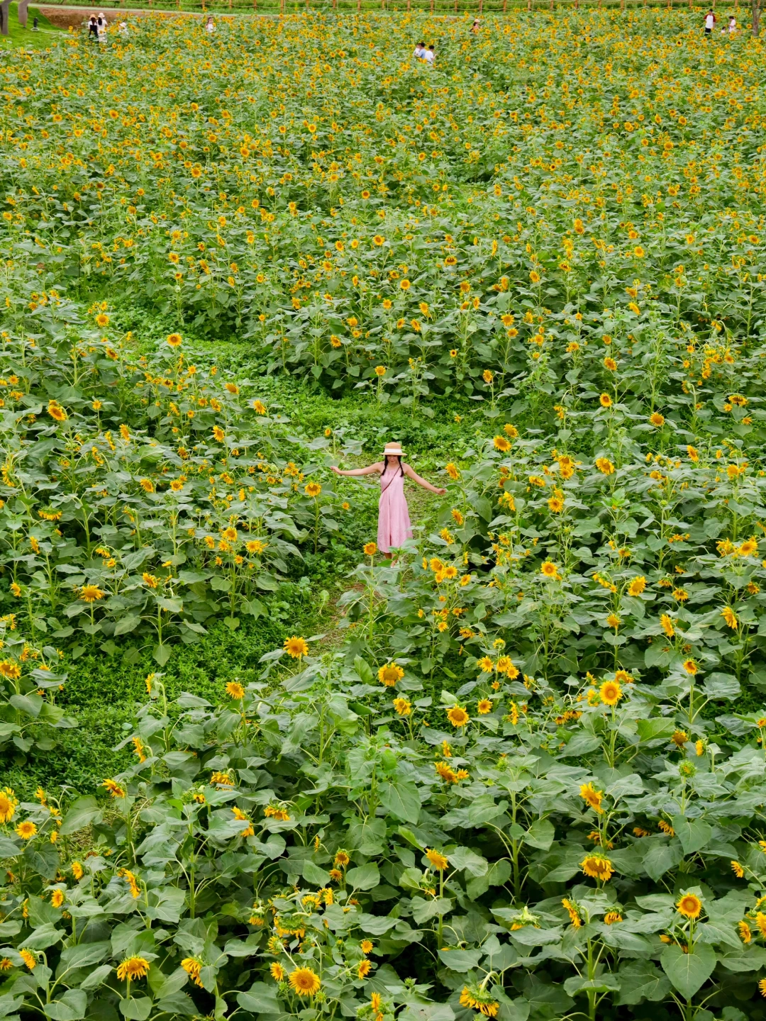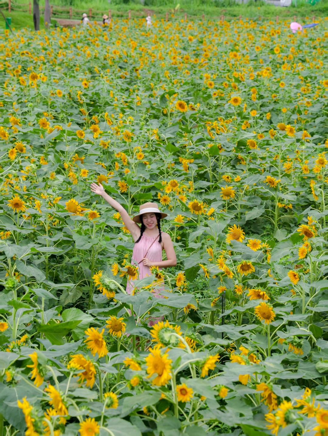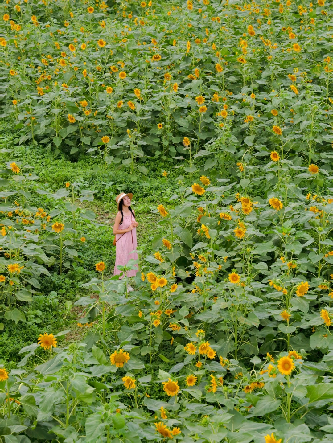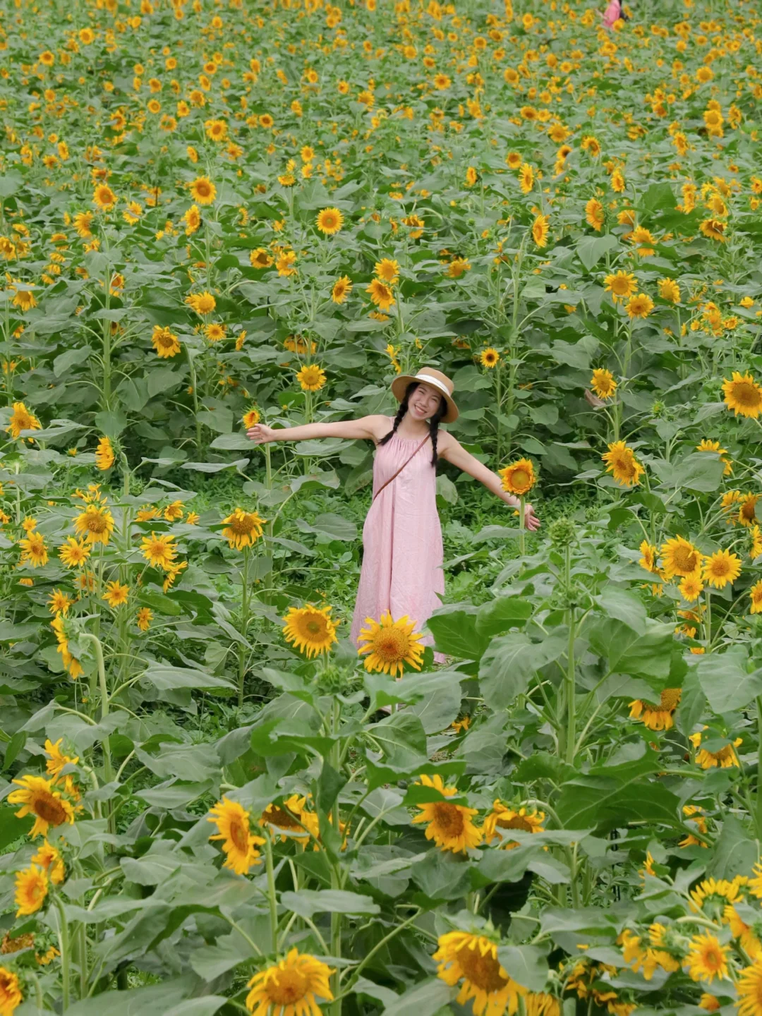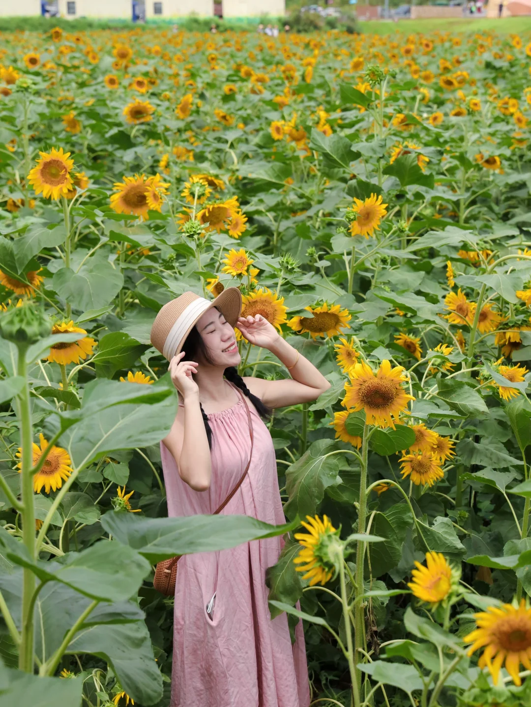 🔸关于拍照:建议女生穿白色或浅色裙子,更出片!!高角度拍摄,可以拍出身后全是花海的感觉。在景区的少女塔观景台往下拍很壮观!!(不管是相机或是手机拍摄,多拉长焦,向日葵会更显大显多)