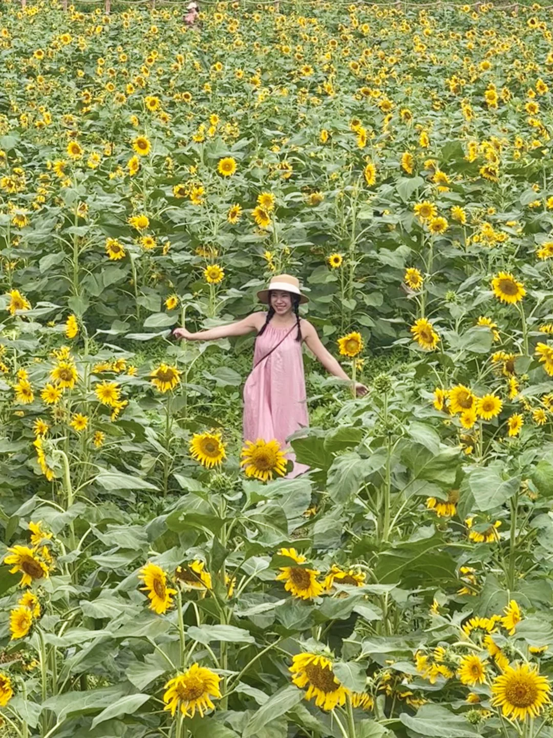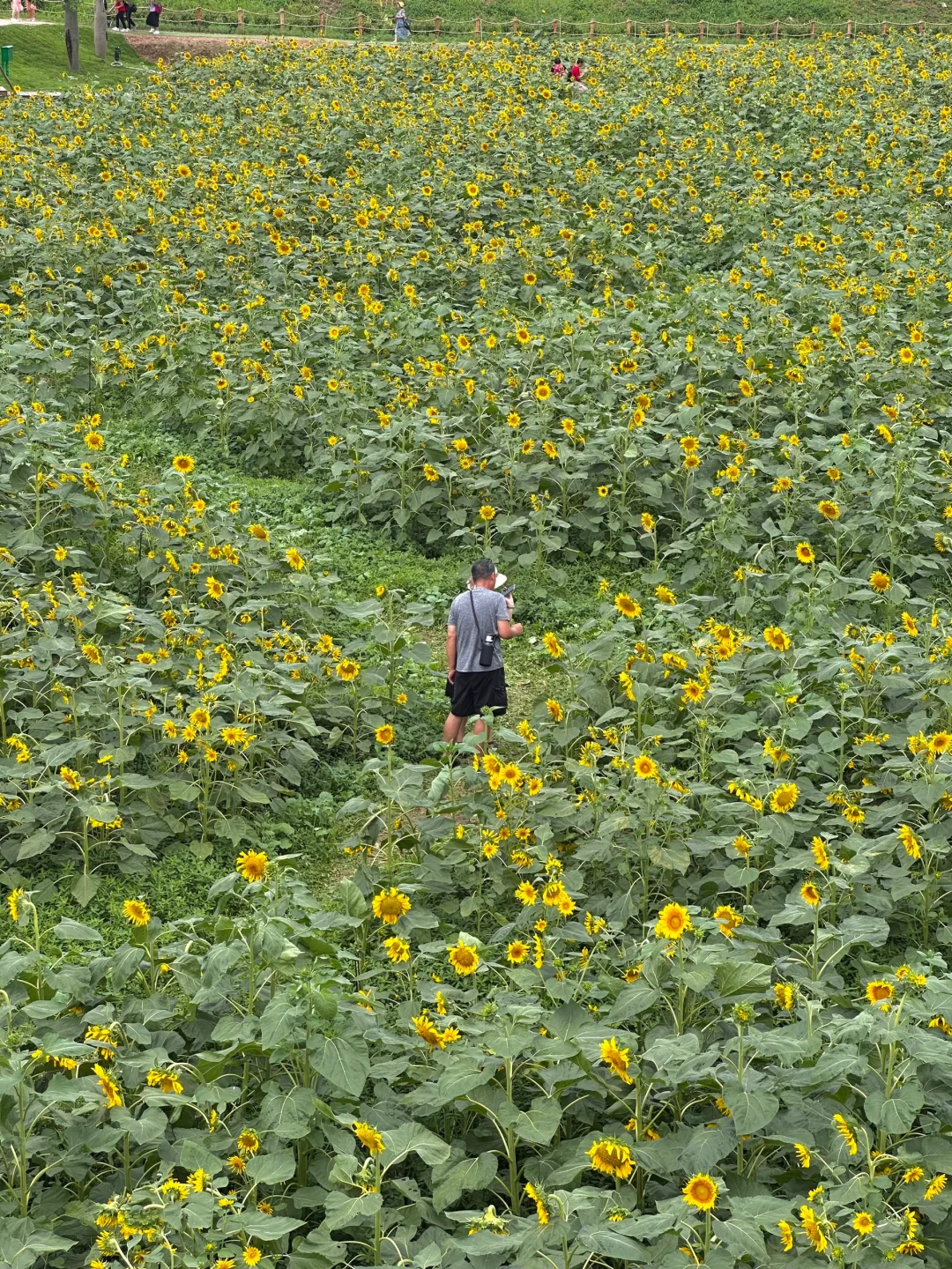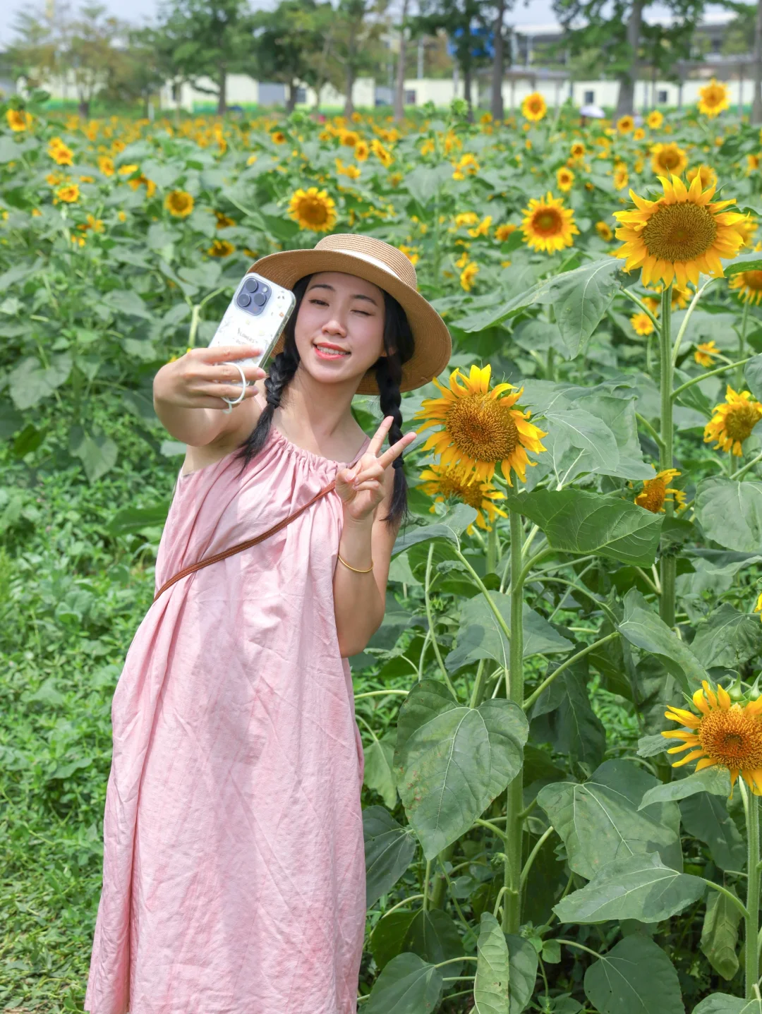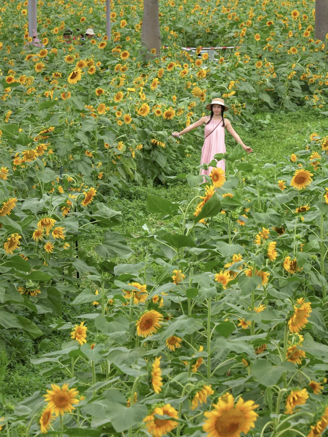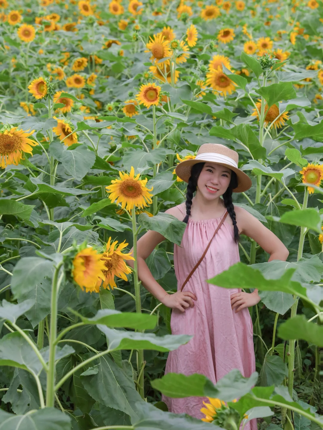 🔸关于拍照:建议女生穿白色或浅色裙子,更出片!!高角度拍摄,可以拍出身后全是花海的感觉。在景区的少女塔观景台往下拍很壮观!!(不管是相机或是手机拍摄,多拉长焦,向日葵会更显大显多)