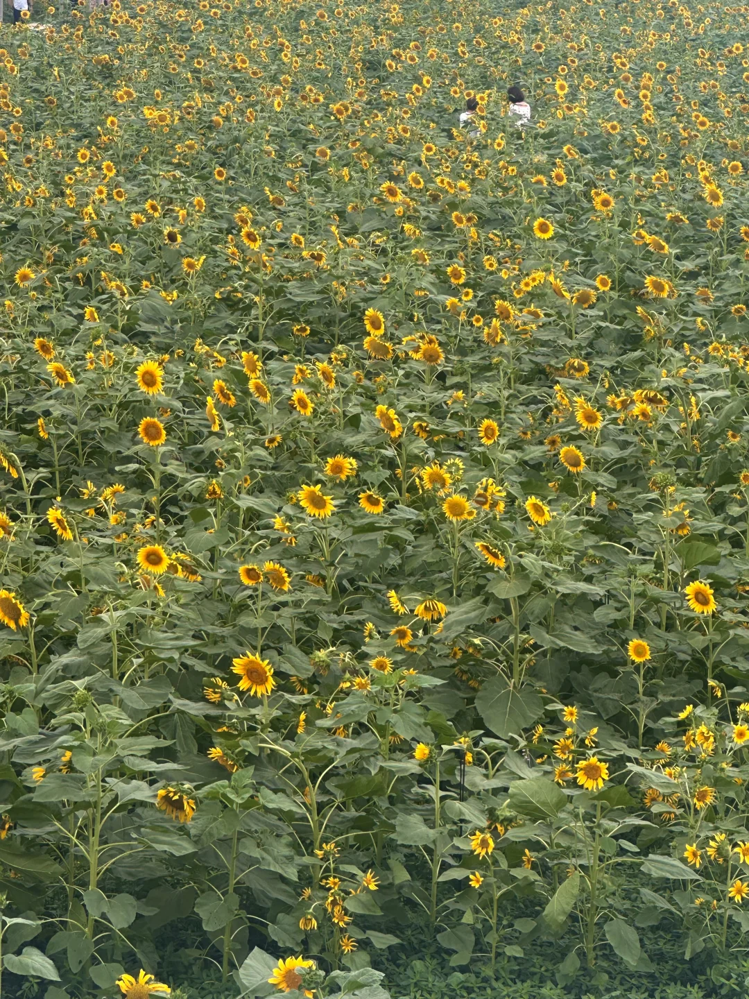 🔸照片拍摄时间:2025年6月2日,目前向日葵已经是盛开状态啦,很漂亮!!(目前接近1号停车场的花海开得更灿烂些,2号停车场附近的还有很多是花骨朵)
