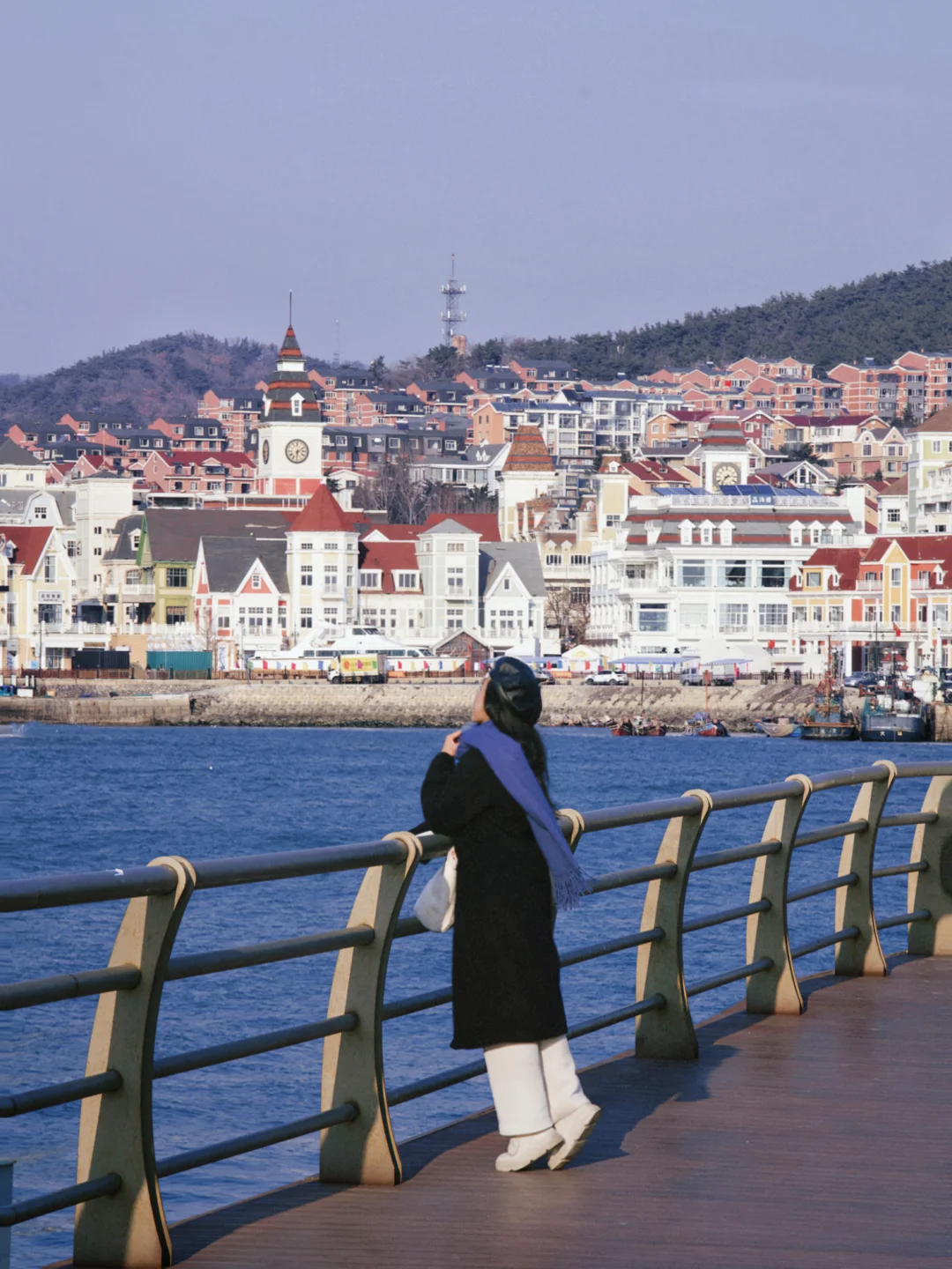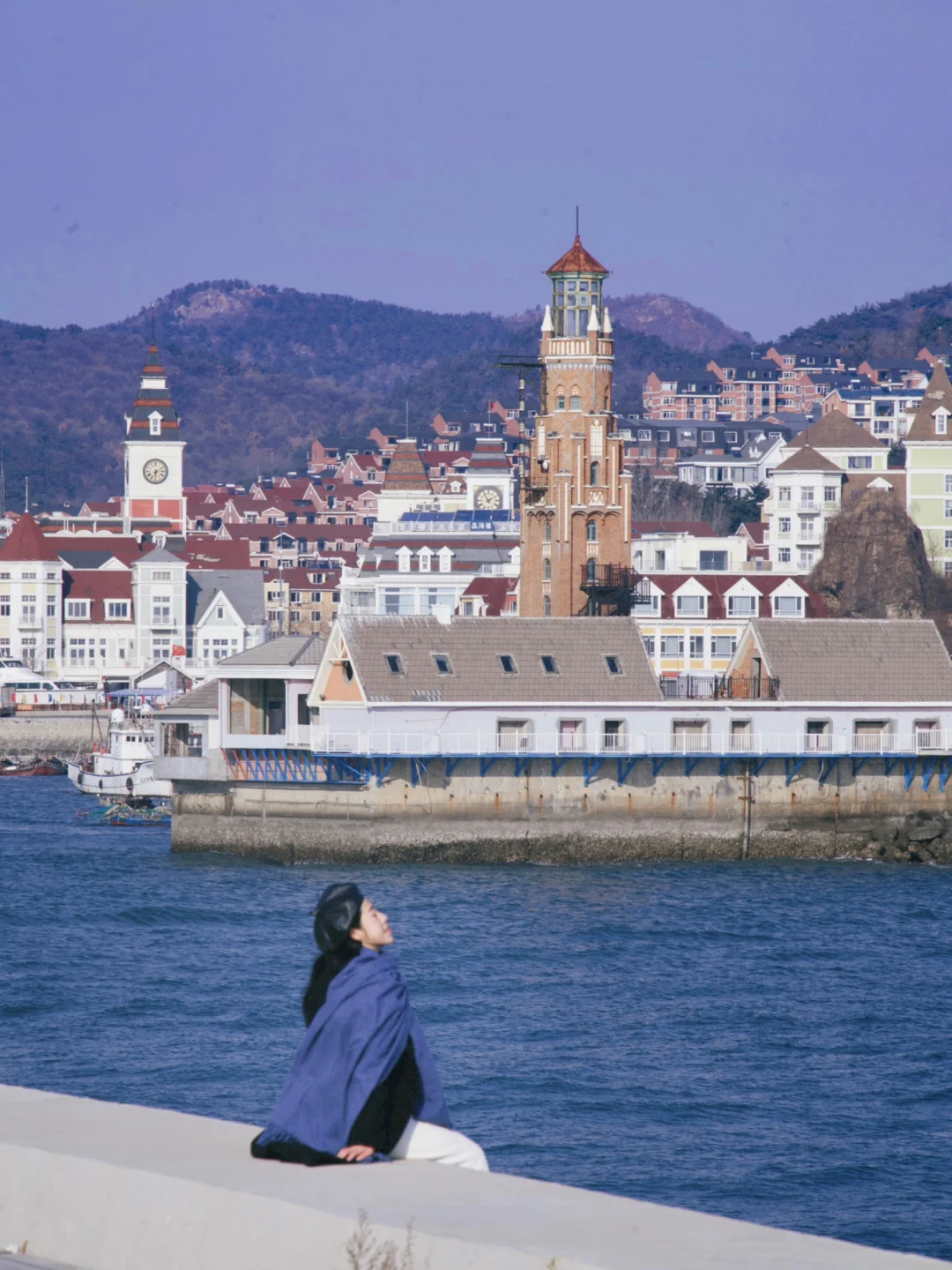 对面海岸上的彩色小屋和蓝天碧海相映成趣,宛如地中海畔的浪漫小镇,,像极了意大利的五渔村,美不胜收~