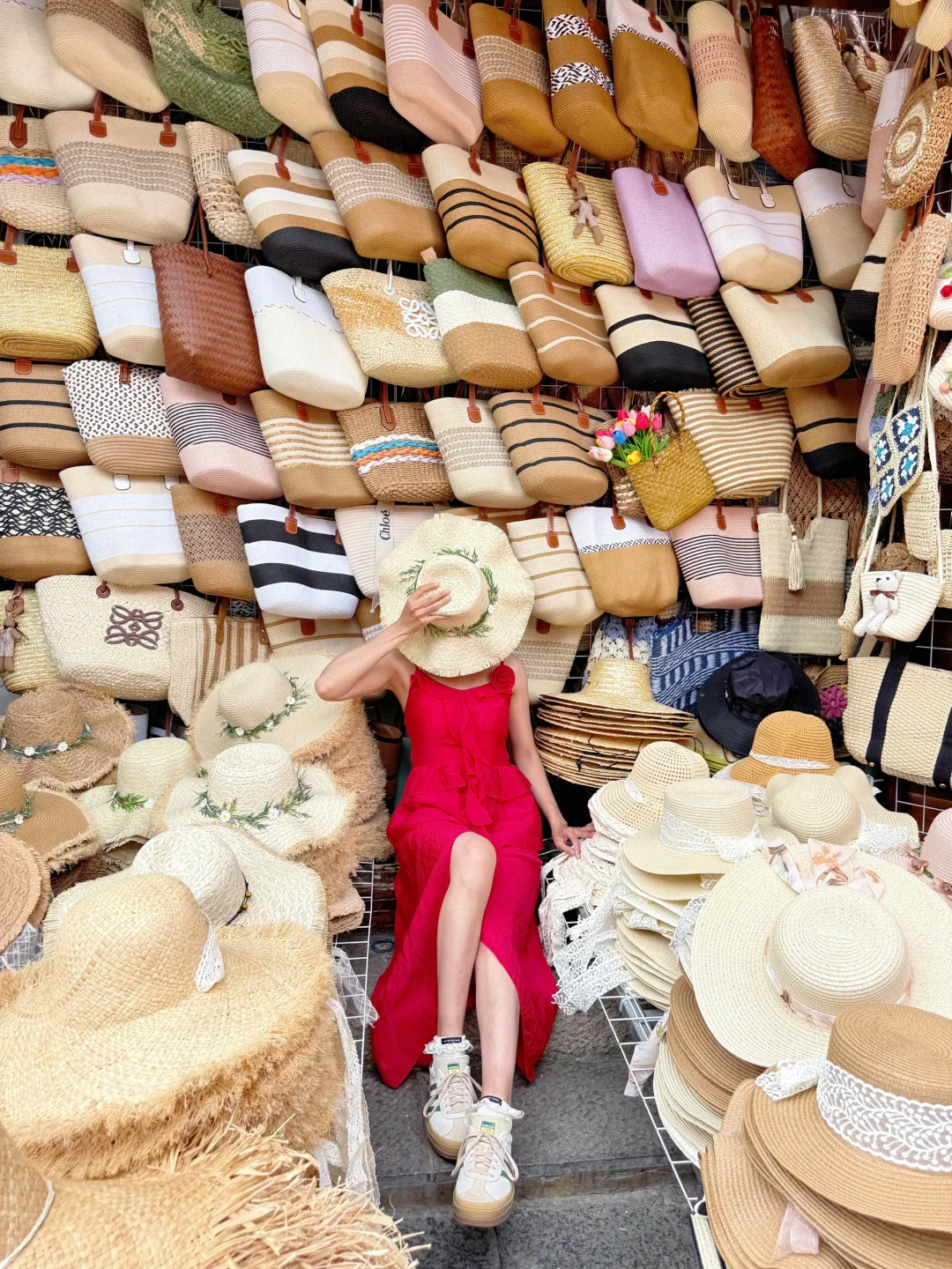 从大理古城北门进入,步行几分钟到北门菜市场,旁边就是一排排网红草编包,每家拍照都很好看;