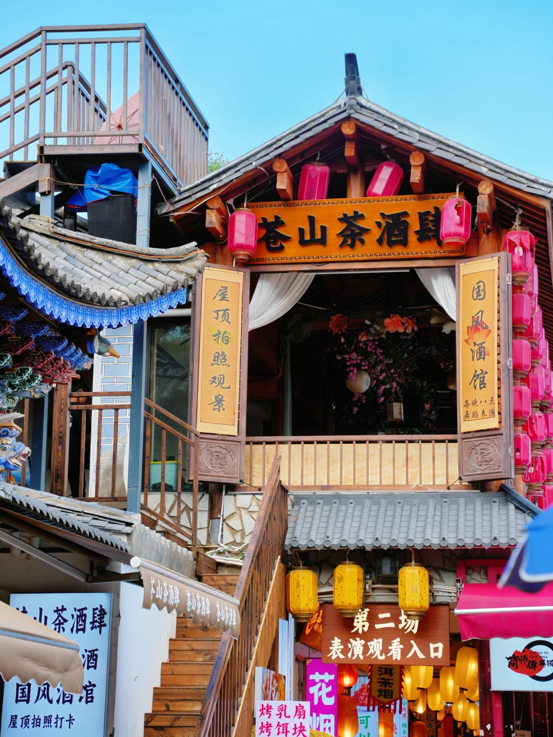 直接导航花旧酒馆,大家记住是一分店哦,店里需要消费才可以上二楼拍照,二楼的瓦片露台正对苍山十九峰云雾缭绕很是治愈;