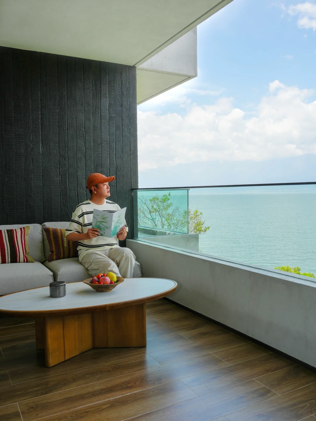 我选择的是『阿凯缇娅·安隐青山』,每个房间都有很大的露台,躺在床上洱海风景也可一览无余,精力好的话在床上蹲个日出真的好不浪漫呢~