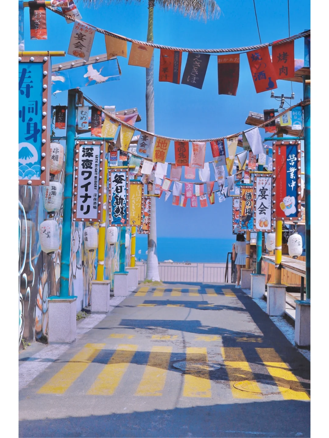 🏮 沿路走去的涂鸦墙,还有充满日系的灯笼和彩旗的街道,一眼望去便是沙滩和蔚蓝的大海,日系的居酒屋可以小憩几杯🍺 . 📷 在这里拍照是挺不错的,但感觉娱乐项目和餐厅还是偏少了~日漫街道只有很小的地方(就是我拍到的那部分)。总结来说,如果想过来拍照还是很出片的,如果想过来娱乐游玩,不太建议哦~ . ⚠️这里巨晒,而且没有什么遮挡物,记得要做好防晒工作哦 . 🍺|深夜酒场 💰|免费 📍|厦门市思明区环岛东路观音山商业街49号 🚇|「观音山站」4号出口步行10分钟 🚌|「观音山商业街站」步行5分钟 .