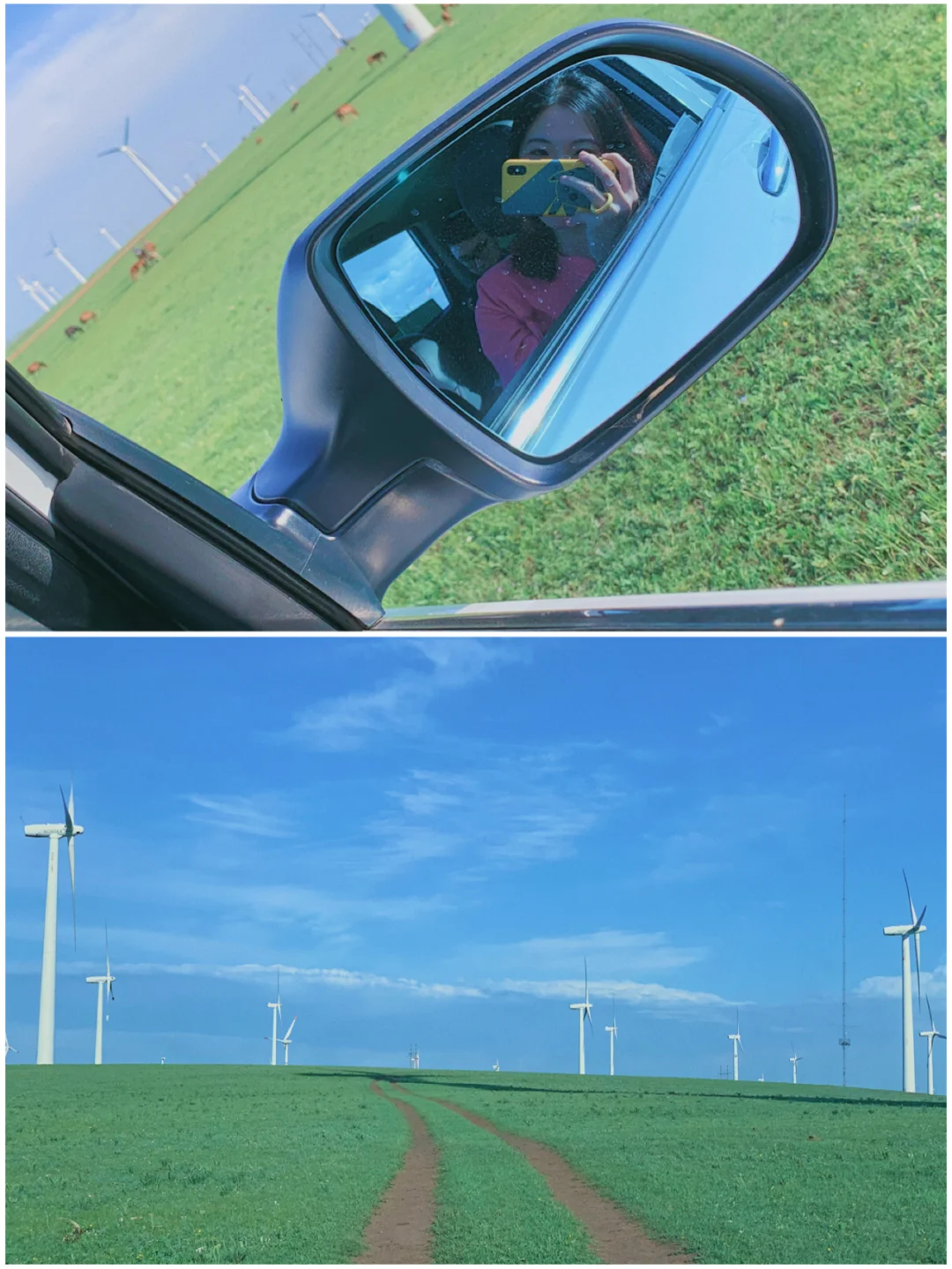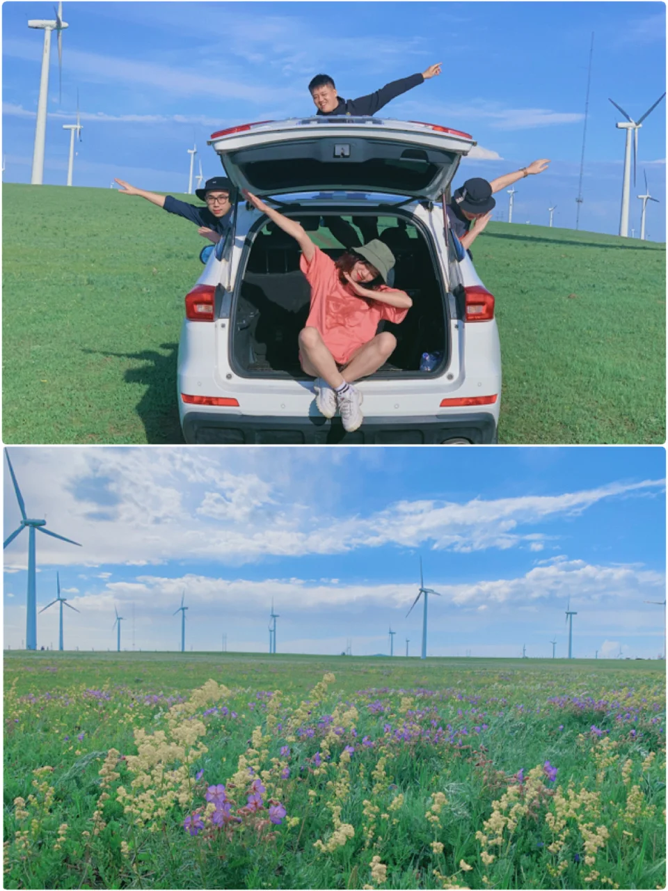 就是一大片草原,随你怎么逛。对比其他草原,我觉得这里更加好看,因为不仅有绿色草原,而且这里还是一片花海💐而且有很多的大风车,看起来就不会那么单调了。反正我们在这里兜风拍照,一个下午就过去了,非常舒服