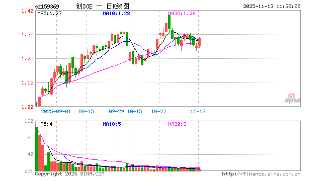 11月13日,截止午间收盘,创业板50ETF易方达(159369)涨2.72%,报1.285元,成交额590.09万元。创业板50ETF易方达(159369)重仓股方面,宁德时代截止午盘涨8.18%,东方财富涨0.57%,中际旭创跌2.19%,新易盛跌1.85%,胜宏科技涨0.00%,汇川技术涨1.44%,阳光电源涨2.72%,迈瑞医疗涨0.13%,同花顺涨1.73%,亿纬锂能涨10.71%。