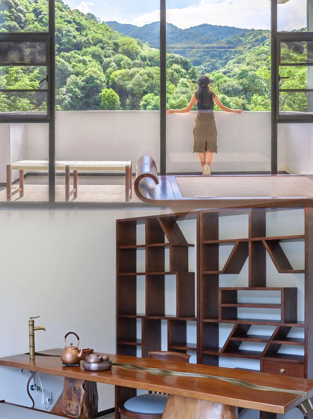 我住的是「天香里」,这里房间以书香门第为主题,满满的书香气息,且每个房间都能看到高山流水的意境的四雅茶台,很有艺术感。
