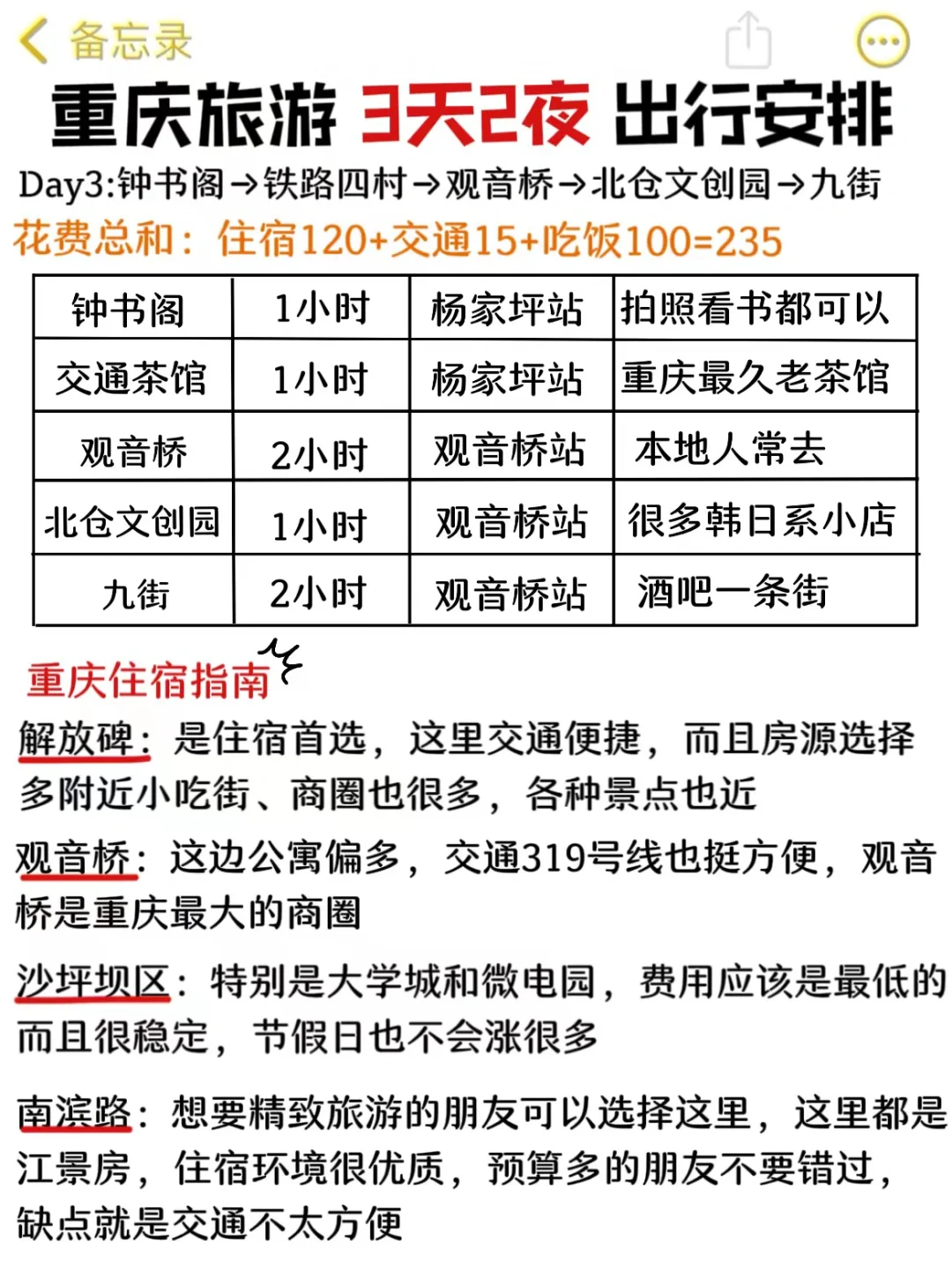 ⭕解放碑:是住宿首选,这里交通方便,而且房源选择多附近小吃街、商圈很多,各种景点也近