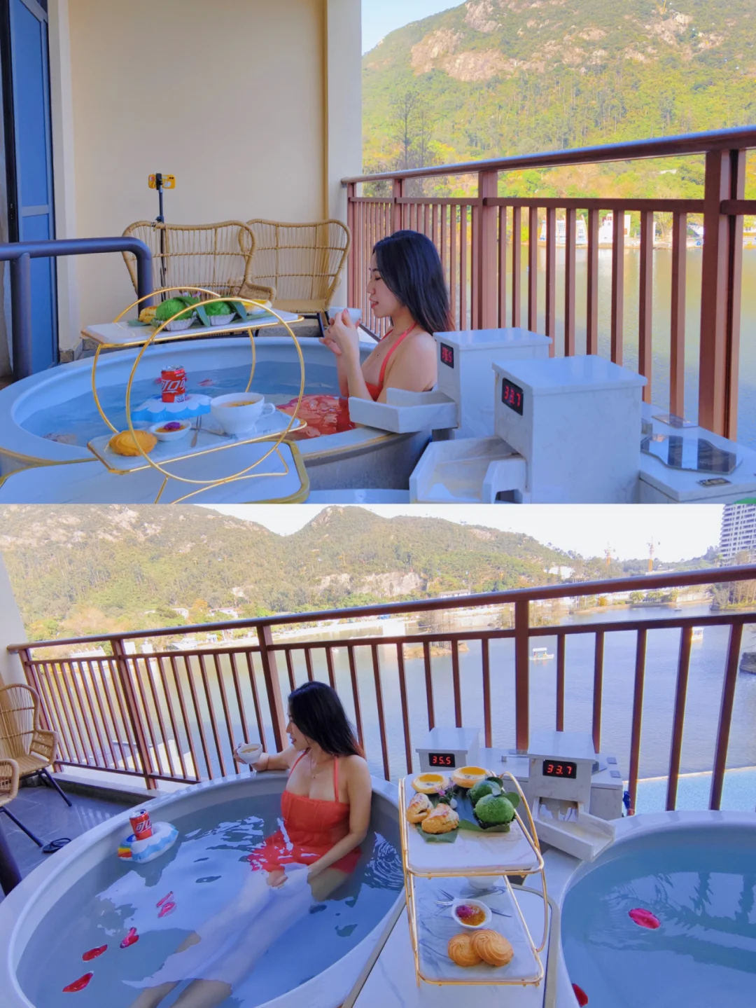 ▫️房间:空间超级大,阳台有两个温泉缸🛁,一人一缸干净卫生,而且这里很适合拍照📷
