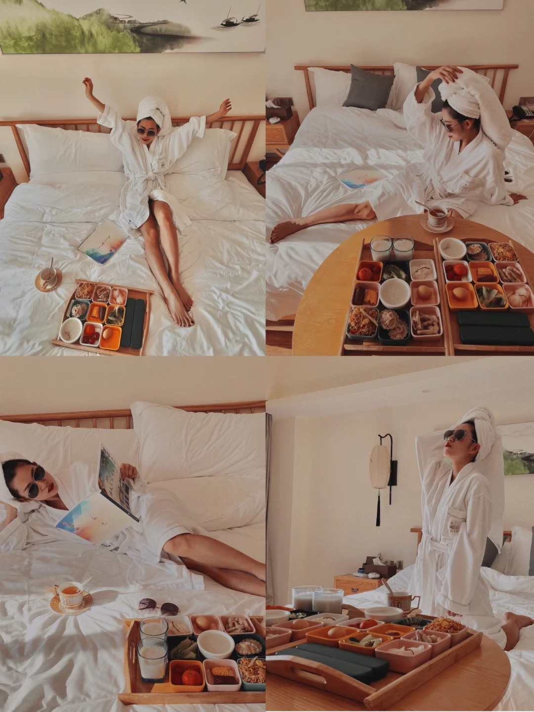 ▫️【早餐】懒惰的我们预约了让酒店把早餐送上客房(入住人数不多才可以送早餐,人数多的话是自助早餐)早餐很丰盛的,我们都吃不完呢~顺便还能拍拍Ins风酒店照📷