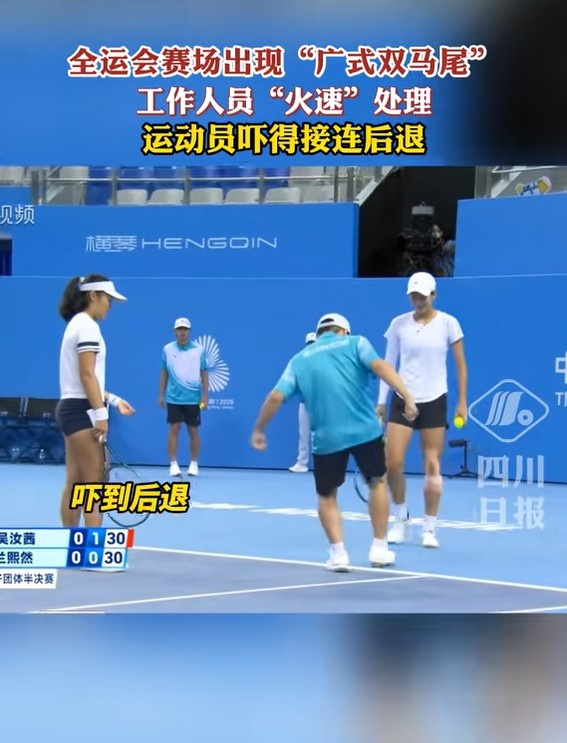 全运会网球赛场出现“广式双马尾”,运动员吓得接连后退