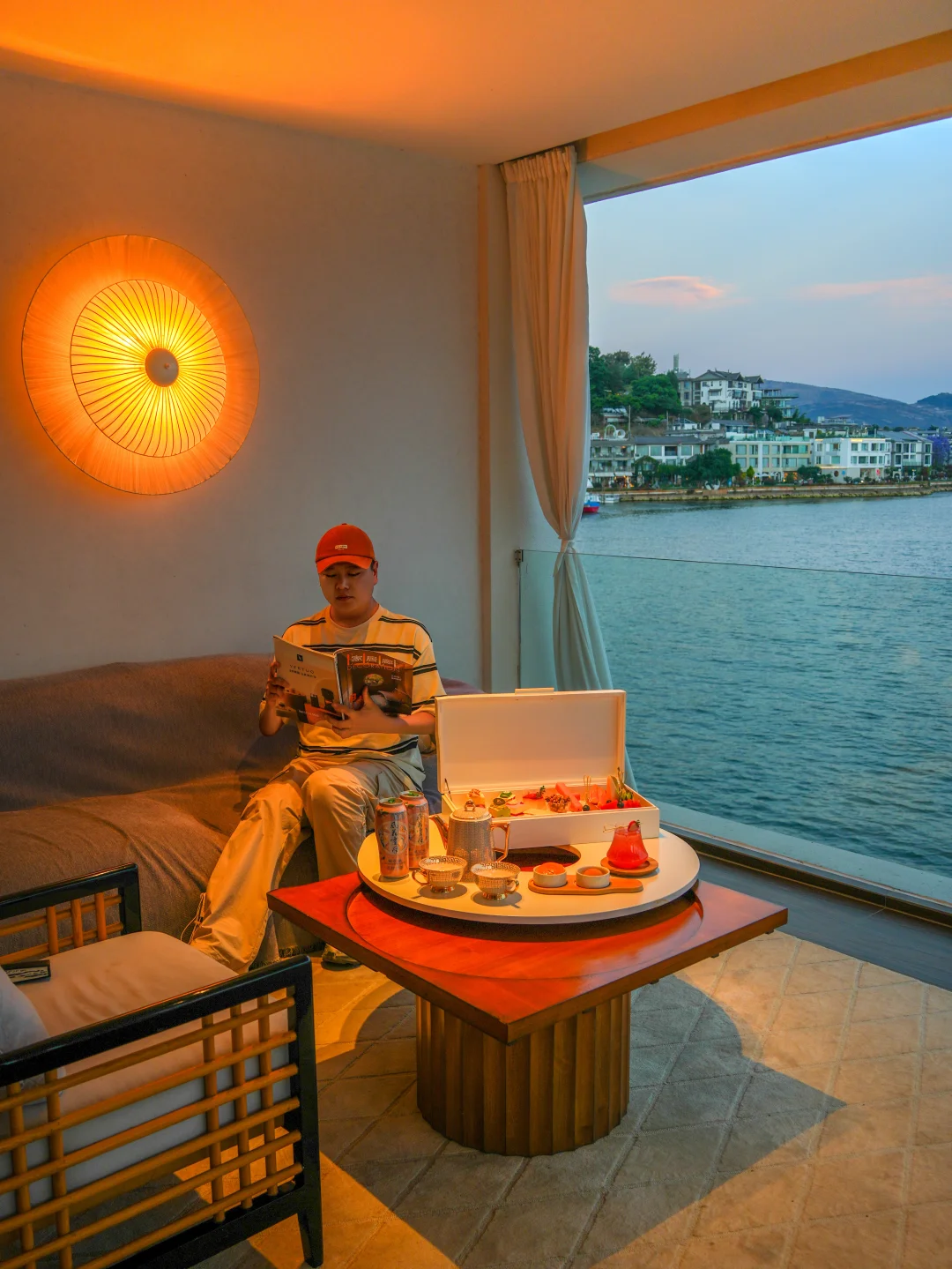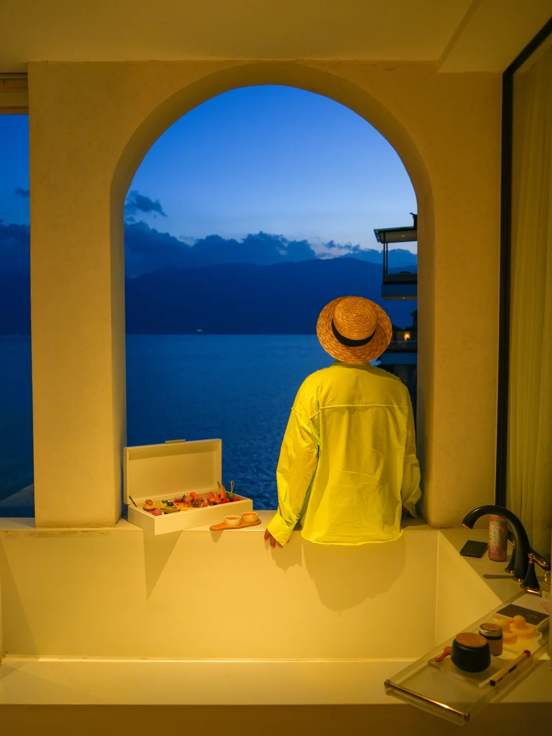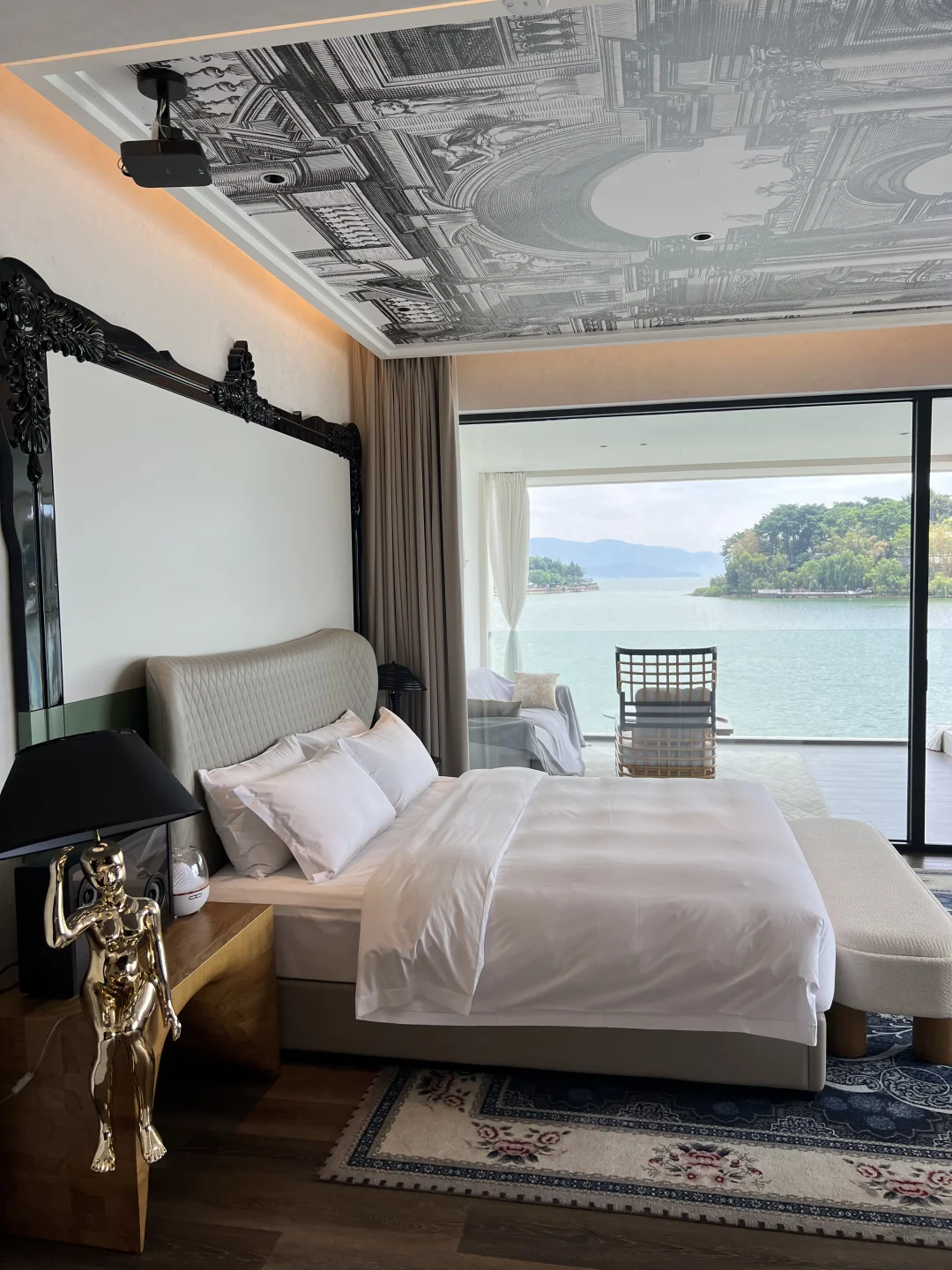 ✔️房间落地窗:日出时分,金色的洱海绝美,分分钟拍出大片