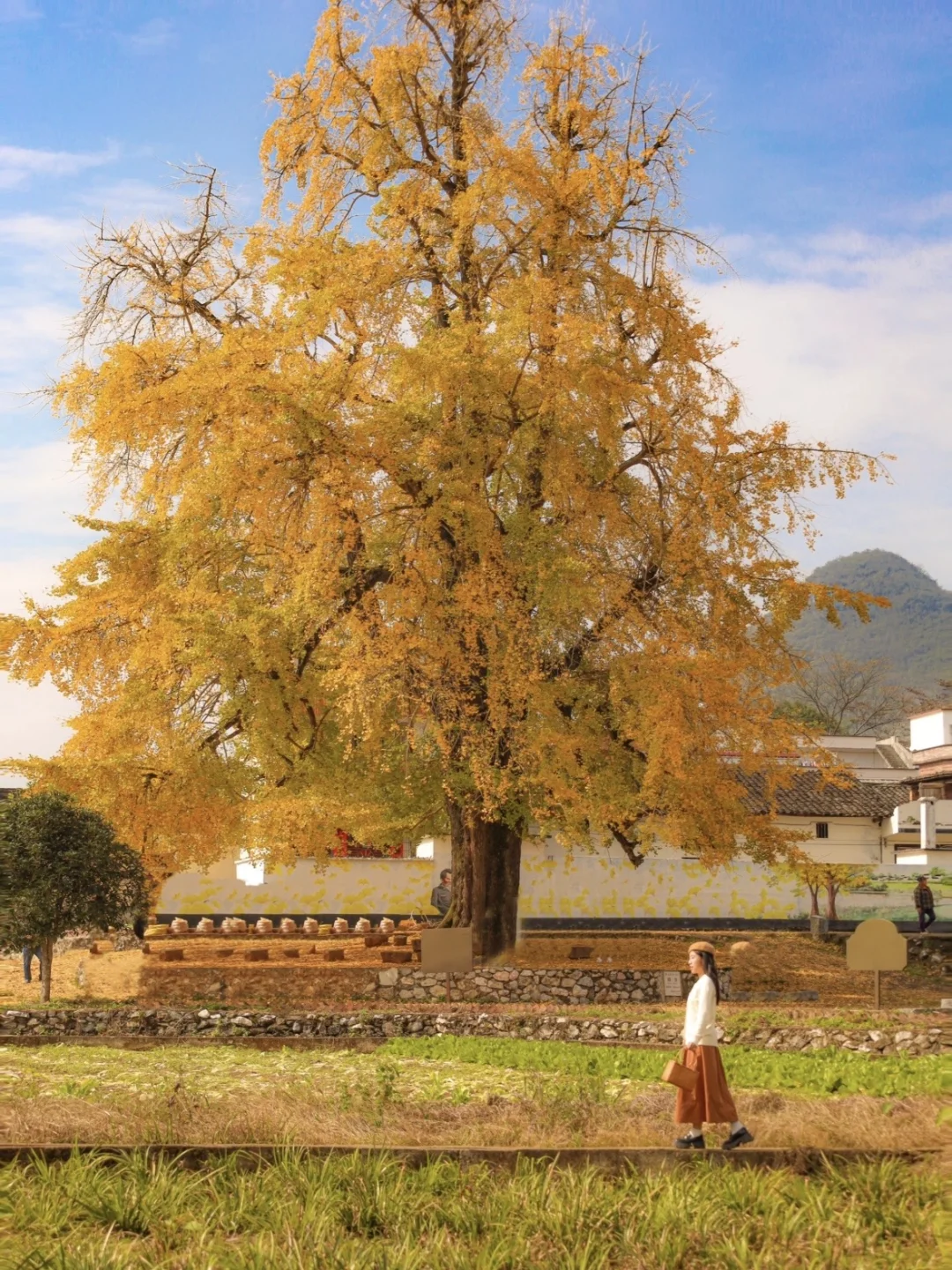✔️沿路会有很多大大小小的银杏树,但论出片当数村里的那3棵千年银杏树!