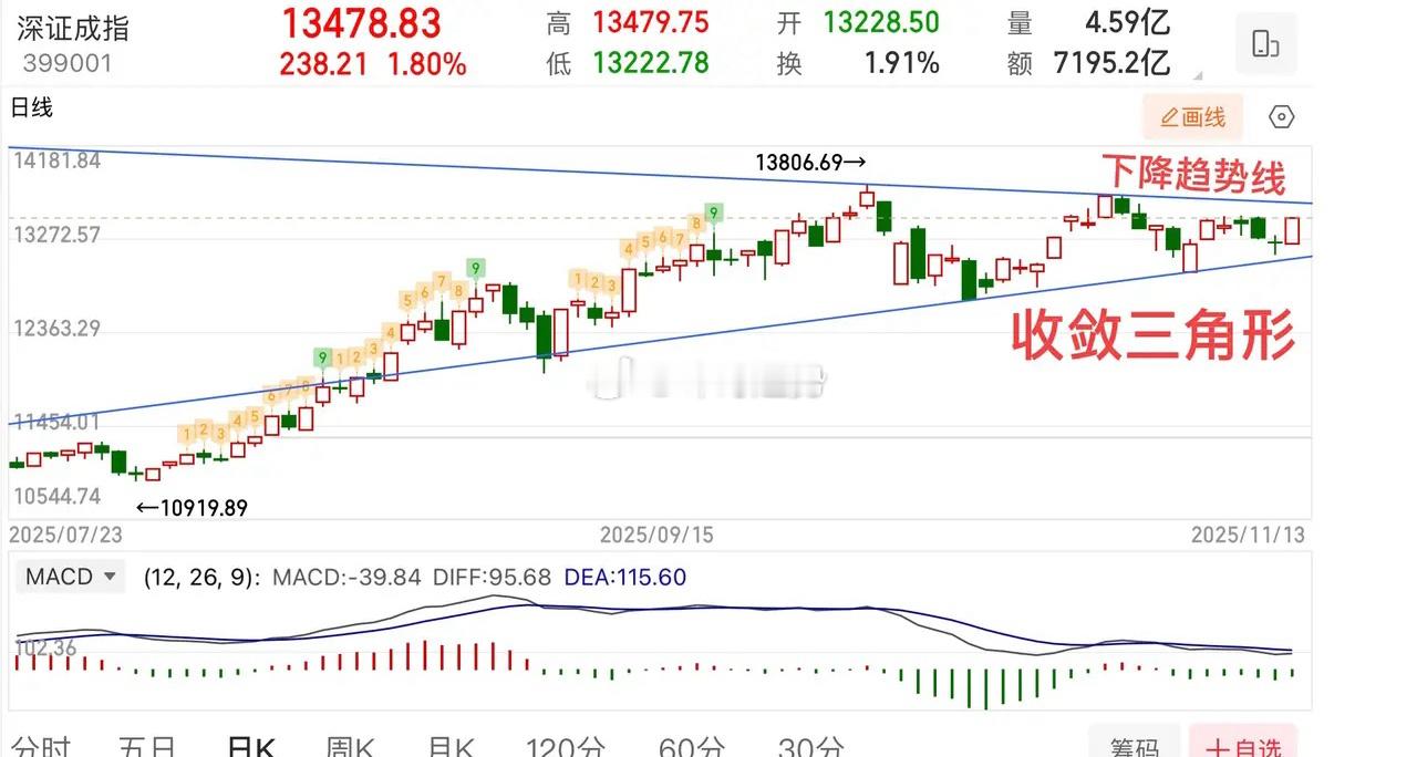 4000点反复纠缠,电池板块爆发,板块掀起涨停潮!接下来会怎么走? 周四早盘延续窄幅震荡整理,量能保持平量状态,基本上就是场内资金在博弈,能够保持强势,主要还是因为今天资金没有继续大幅度流出。 技术面看,图1,各个指数走势并不同步,上证指数基本上维持强势,结构上仍处于中枢运行,需要注意的是完成中枢之后能否向上变盘。 这里的核心还是以中枢为参考后续的走势方向。向上则关注能否加速突破站稳4025?向下关注中枢下轨3980。 深成指、创业板走势其实就相当于上证指数9-10月份的行情,大中枢箱体震荡,逐步收敛图2。 综合来说,震荡行情大概率还会延续,短期上下空间都相对有限,注意节奏!轻指数,重个股,管理好仓位即可。 板块方面,电池集体爆发,主要还是消息面催化,电池涨价逻辑。 个人观点,仅供参考!