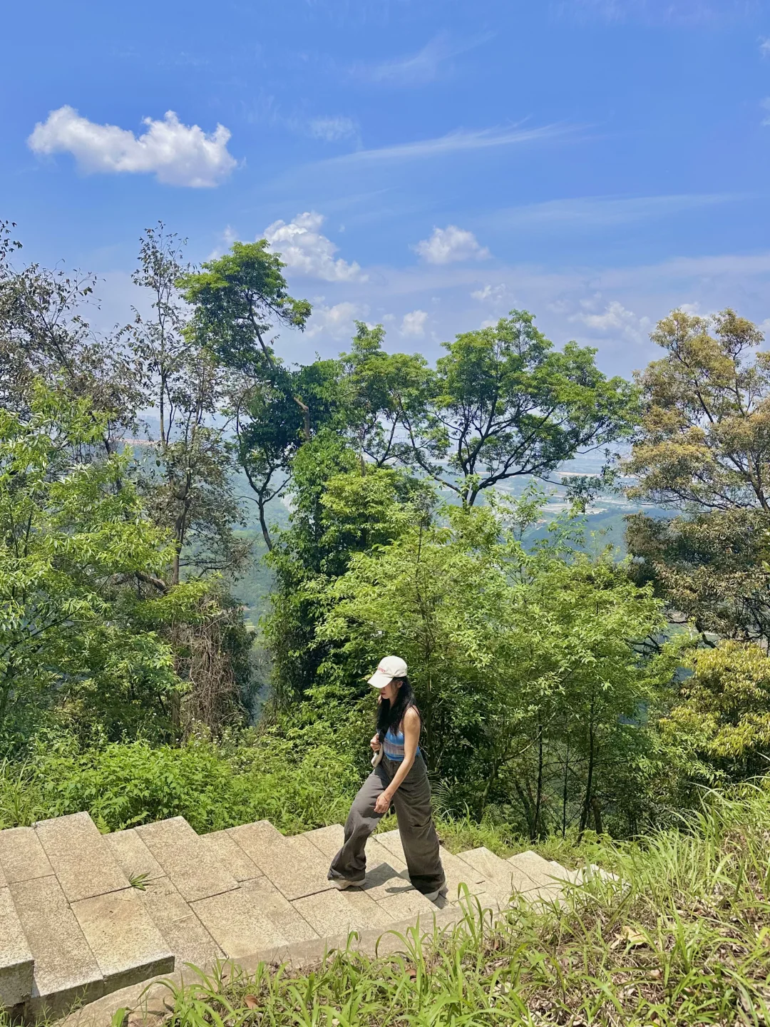 ❶游览路线:有两条登顶的路线,上山预计需要60分钟左右。「竹林石阶」一路上都是林荫小道,有竹林遮荫,很适合夏天来这里徒步游玩;「水泥主道」广阔的风景大部分都集中在这里,很适合拍照,但遮荫,但就是坡度较高,上山会比较吃力,下山时需要控速。