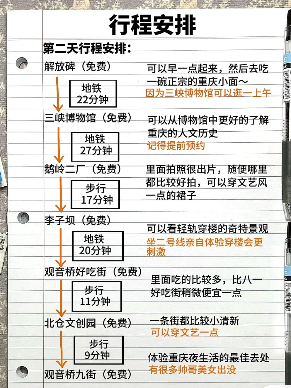 💥第二天:解放碑(免费)→三峡博物馆(免费)→鹅岭二厂(免费)→李子坝(免费)→观音桥好吃街(免费)→北仓文创园(免费)→观音桥九街(免费)