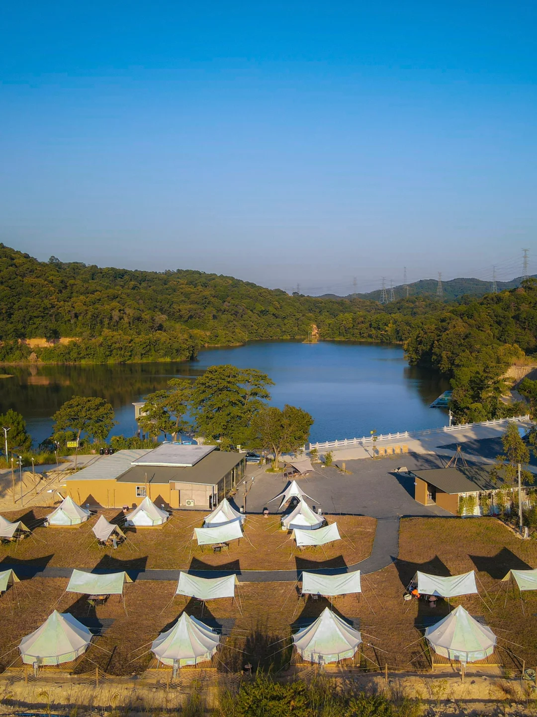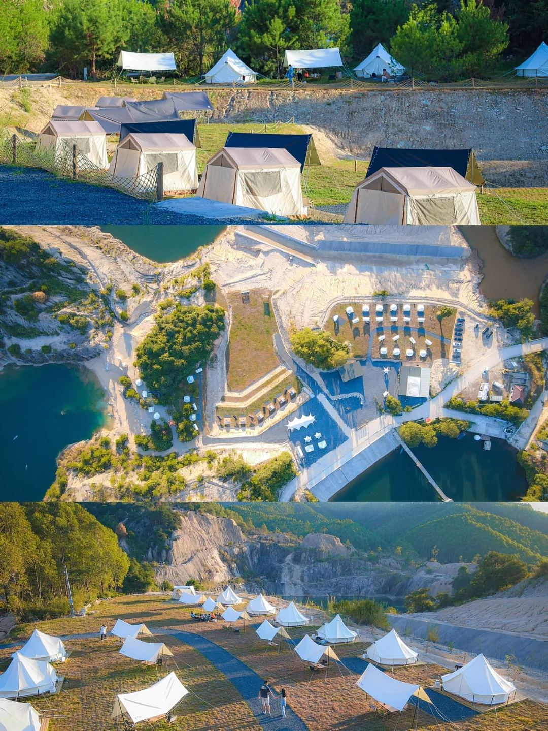 营地依山傍水,被三个水湖所包围(两矿坑、一水库)