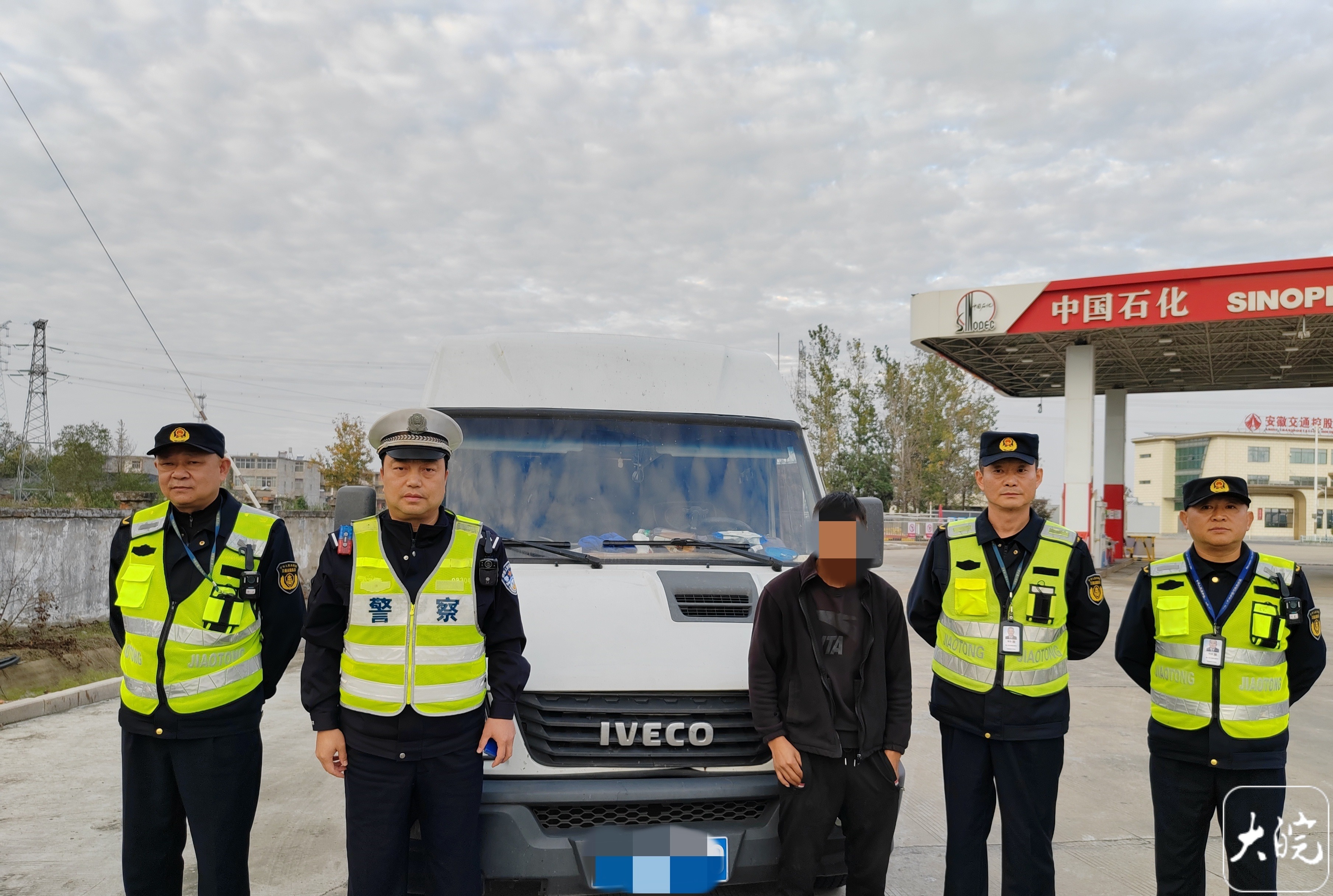 11月12日下午,阜阳市公安局交管支队高速二大队民警在滁新高速颍上服务区开展执法巡查,一辆悬挂江苏号牌的依维柯客车进入视线,该车车身有“货拉拉”醒目字样,车厢里有多人乘坐。民警检查车辆,打开车门后发现原有座椅已被拆除,改为可折叠的简易座椅,车内有6名乘客。