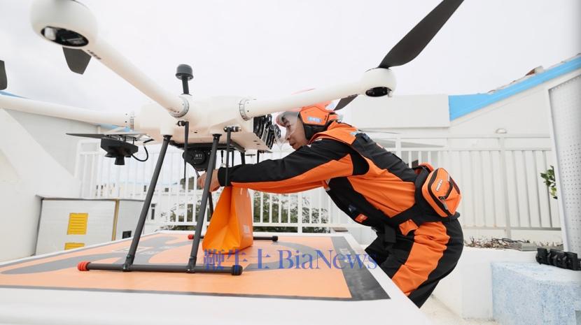 (图说:淘宝闪购无人机为游客和海岛居民搭建起一条快捷通畅的“空中通道”。)