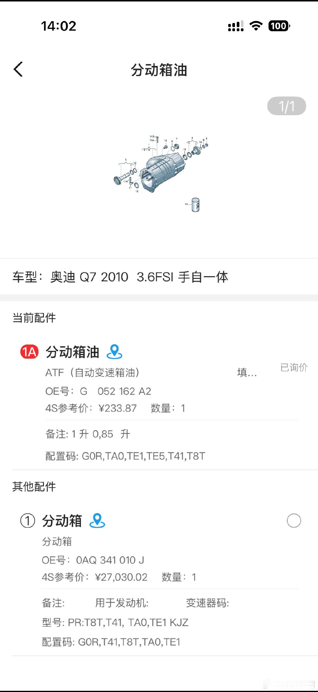 奥迪搭载独立托森分动箱的四驱车,分动箱油是个重要保养项目,但是容易踩雷。国内修理厂常用的汽配平台用车架号识别,识别出来的分动箱油是错误的,G052 162 A2是个ATF。我相信肯定有不少奥迪错误地用上了这个油。之前我让某“奥迪专修”给我报价分动箱油,油卖我两百多一升,不用想,肯定是这个错误的规格。应该换的油是G055 145 A2,这个油原厂十分昂贵,一升接近一千块,且假货泛滥。有个低成本解决方案是用Ravenol专门针对这个零件号出的油,三百左右即可搞定。