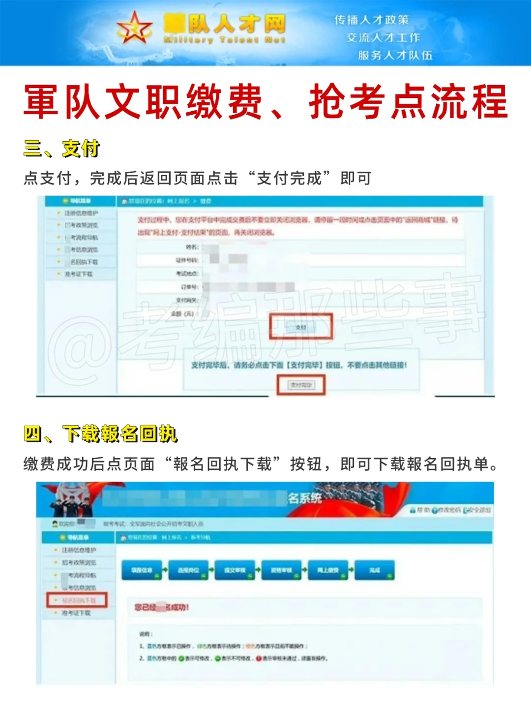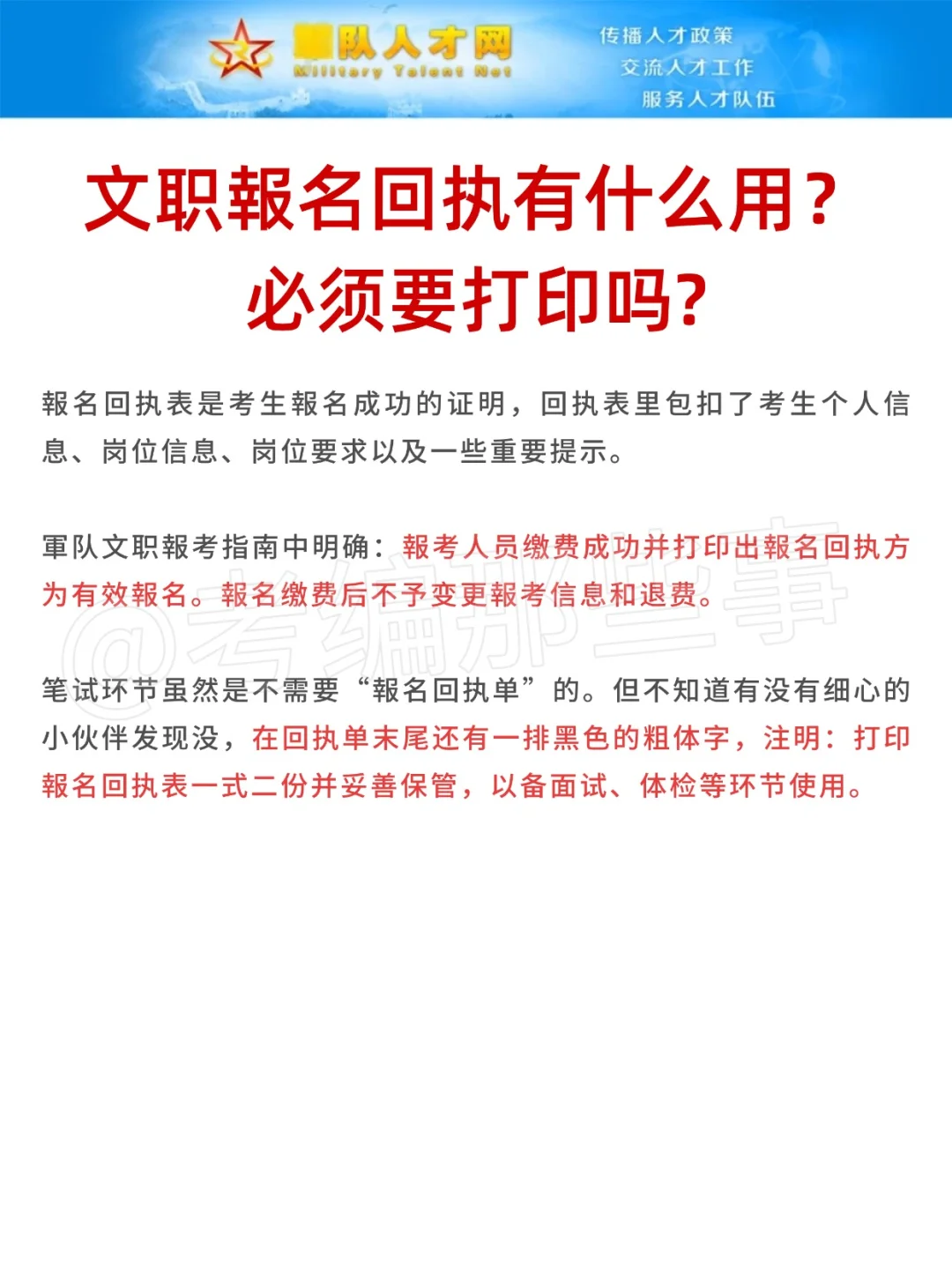 🔸 回执表是考生報名成功的证明,回执表里包扣了考生个人信息、岗位信息、岗位要求以及一些重要提示。
