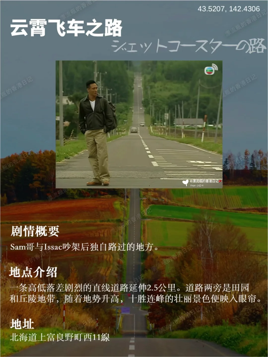 虽然只出现了短短一幕,但是「云霄飞车🏎️之路」是上富良野地区的知名打卡地之一,全长约4公里的直线道路,因为地形关系形成高低起伏的模样,有如云霄飞车一样向天空🌌延伸,两侧优美宁静的田园风光,衬上远方的十胜连峰山脉,是当地有名的兜风路线