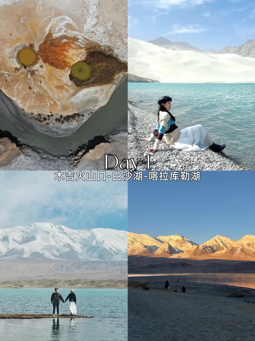 𝑫𝒂𝒚1️⃣:落地喀什 →【木吉火山口】→ 仙境【白沙湖】→【喀拉库勒湖】→ 宿塔县