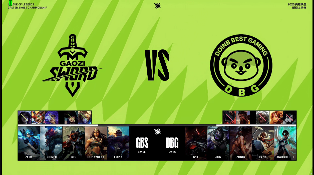DBG选用:N1e塞恩、Jun蒙多、Zonic阿卡丽、Flymao飞机、Xiaobheihei卡尔玛
