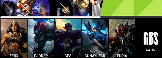 GBS选用:ZeuX格温、Djoner巨魔、CF2劫、Gumayufan希维尔、Furia布隆