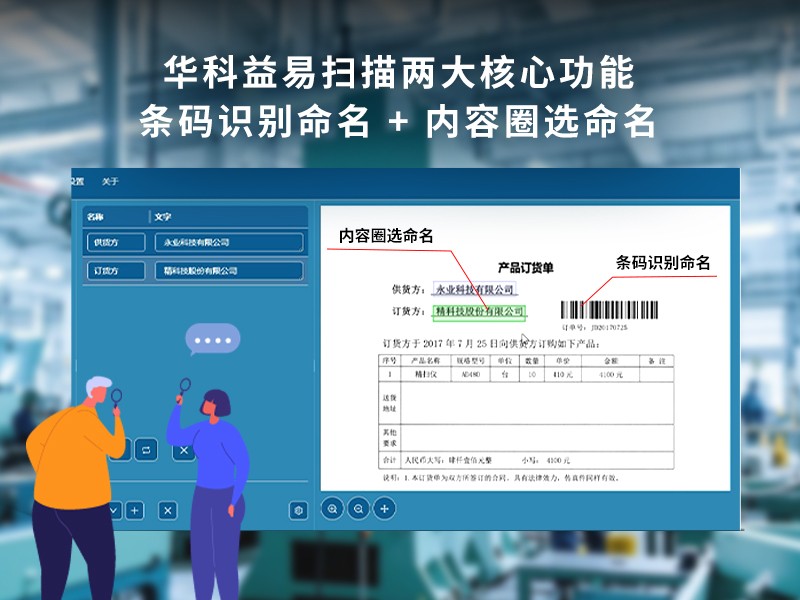 这样的困境在车间生产、质检审核、财务对账等环节反复上演:人工录入慢、单据格式杂难适配、数据录完还要手动导系统,层层阻滞着企业数字化落地的节奏。而华科益易扫描软件的出现,以“条码识别命名+内容圈选命名”两大核心功能,用轻量化工具精准破解行业沉疴,成为制造业降本增效的实用型利器。
