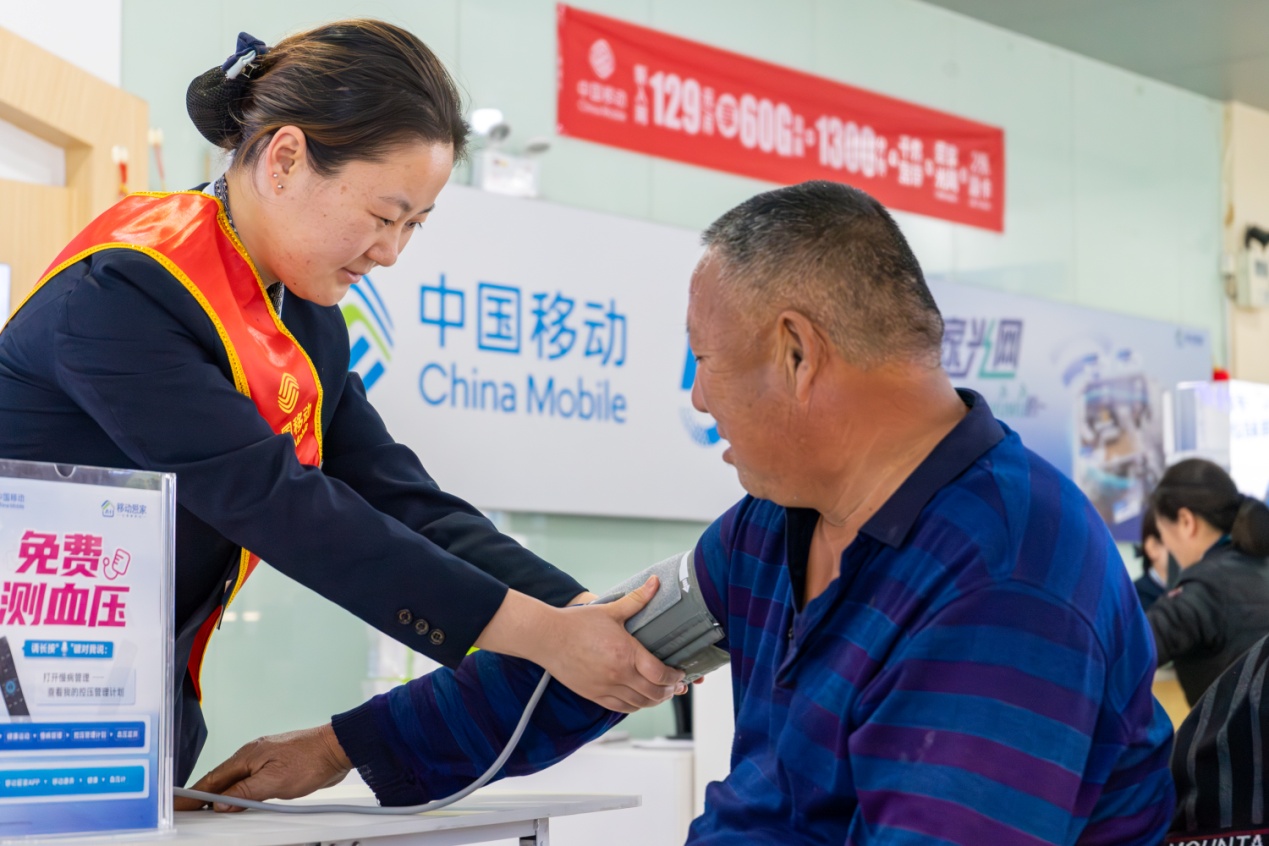 走进营业厅,“银发服务专区”的标识格外醒目。专区内不仅配备了轮椅、放大镜、应急药品箱等适老物资,还专门设置了健康检测角。工作人员化身“健康助手”,手持专业血压仪为老年客户免费测量血压,详细记录每次检测数据,为血压偏高的客户定制“饮食+作息”健康小贴士,并附上社区卫生服务中心的咨询电话。“您今天的血压有点高,记得少吃盐,每天多散散步,下周来缴费时可以再测一次。”工作人