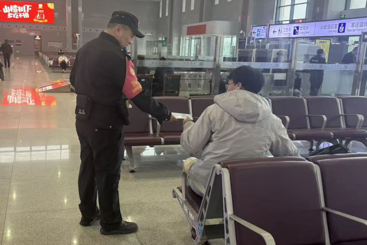 “各位旅客,凡是自称公检法要求汇款的,都是诈骗!凡是通知‘中奖’、领取‘补贴’要你先交钱的,都是诈骗!”近日,在客流高峰期的禹州高铁站候车大厅内,禹州站派出所民警手持宣传册,穿梭在旅客中间,向旅客传授防骗知识。
