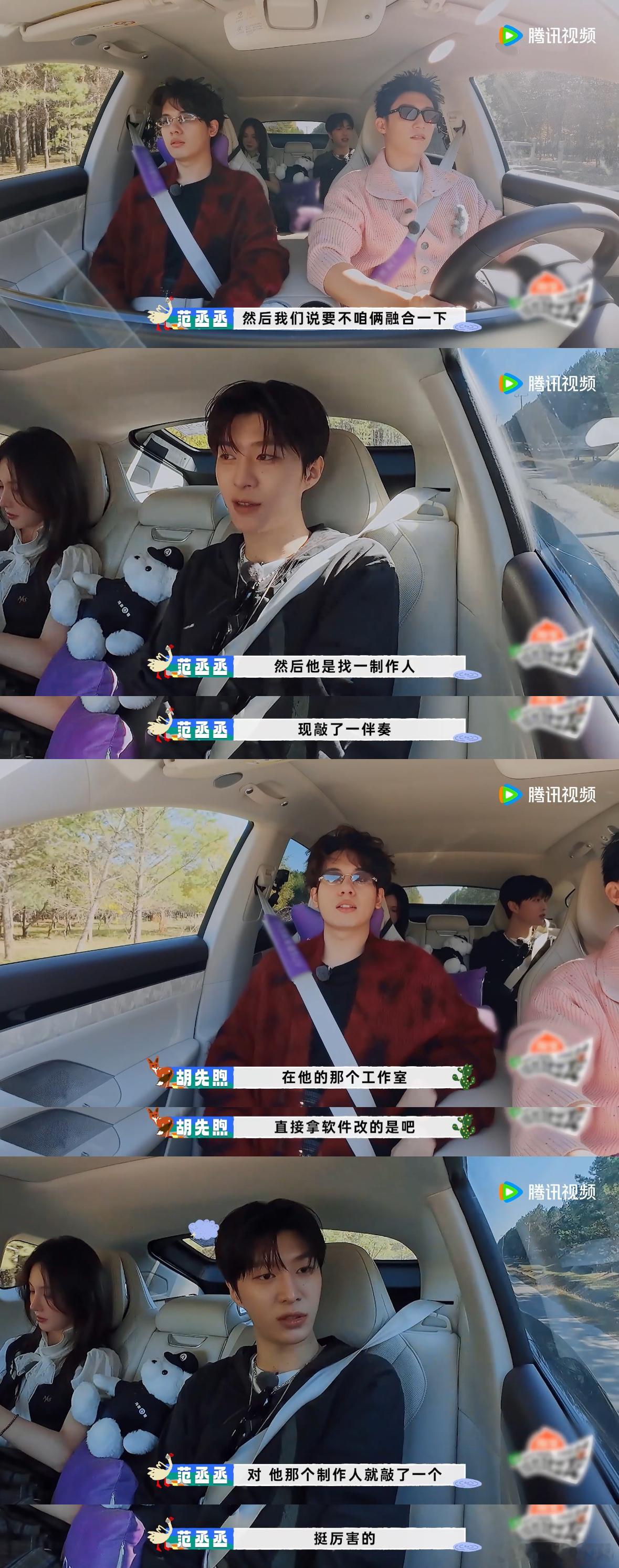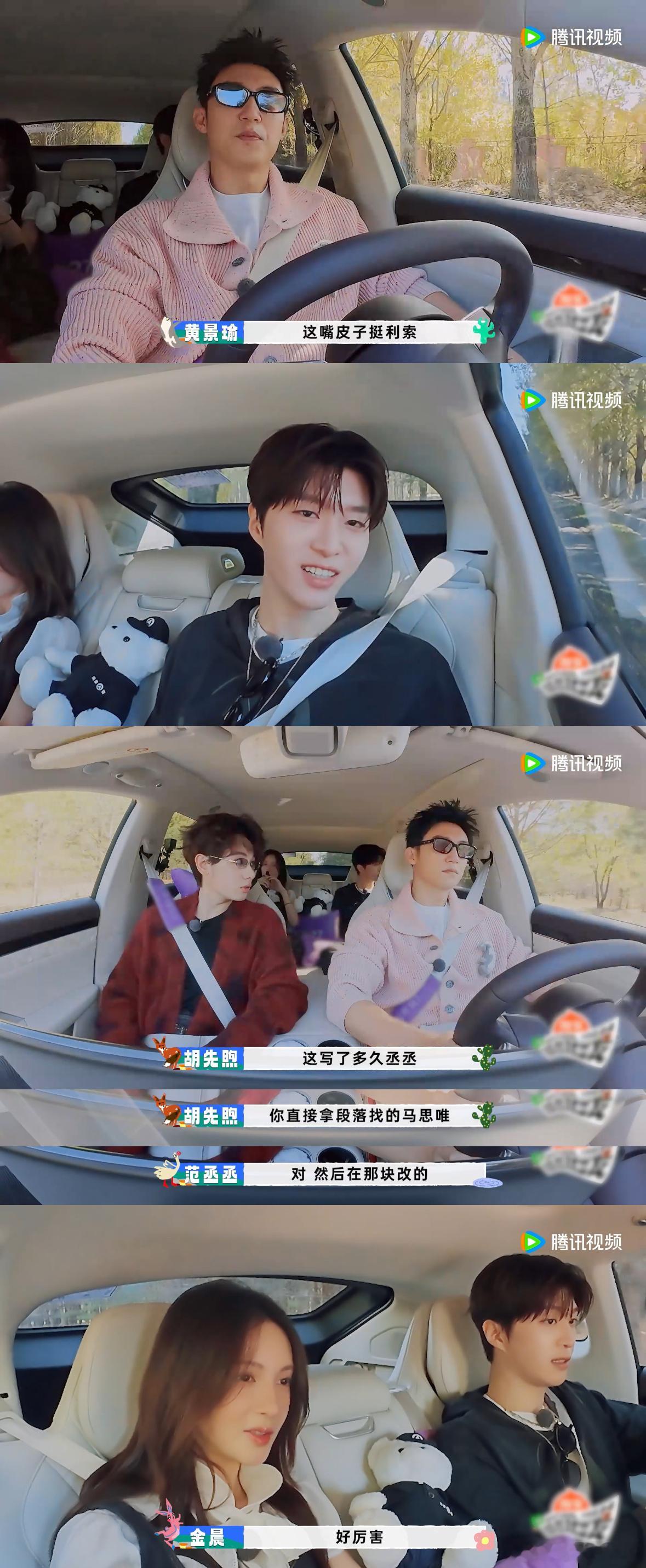 胡先煦在车上放范丞丞的歌时,精准地说出歌曲的段落,黄景瑜都被他的音乐品味打动,看