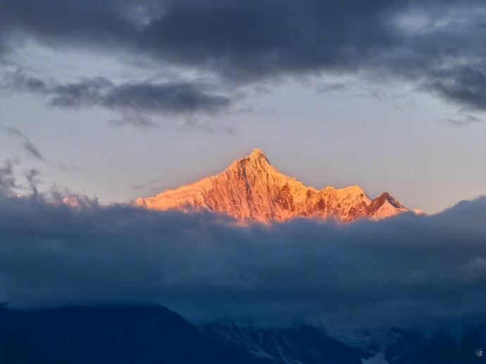 刘诗诗发布日照金山合影,高马尾凸显灵动,侧颜线条优越,与雪山同框像画中场景。