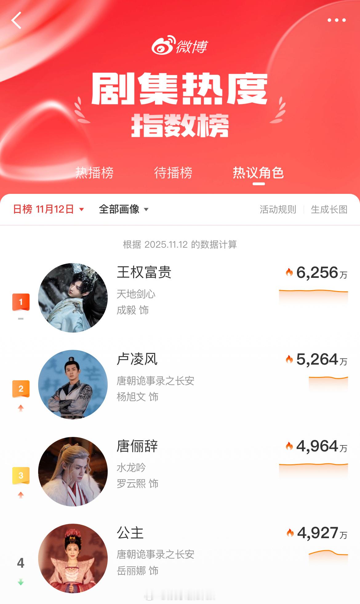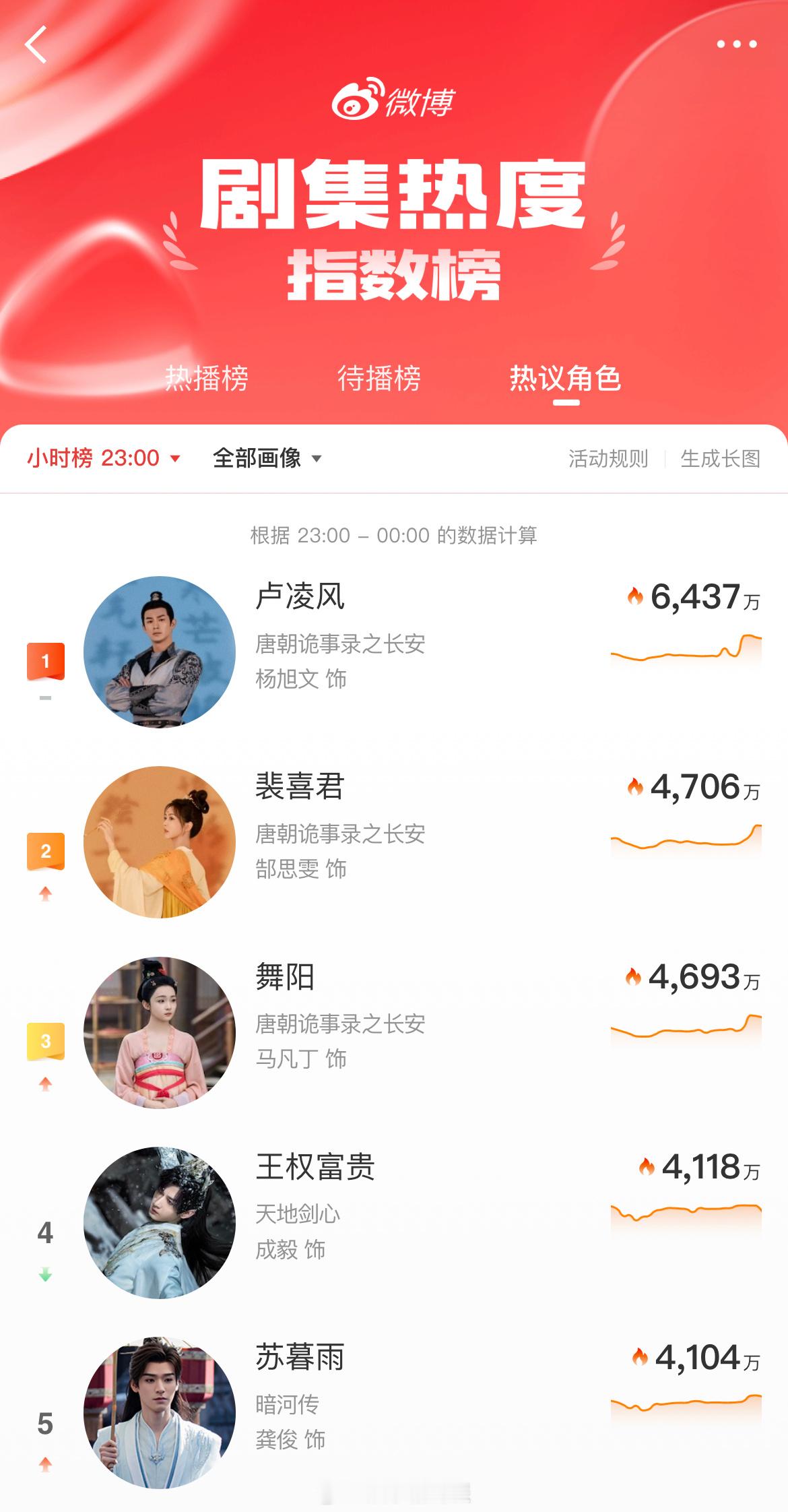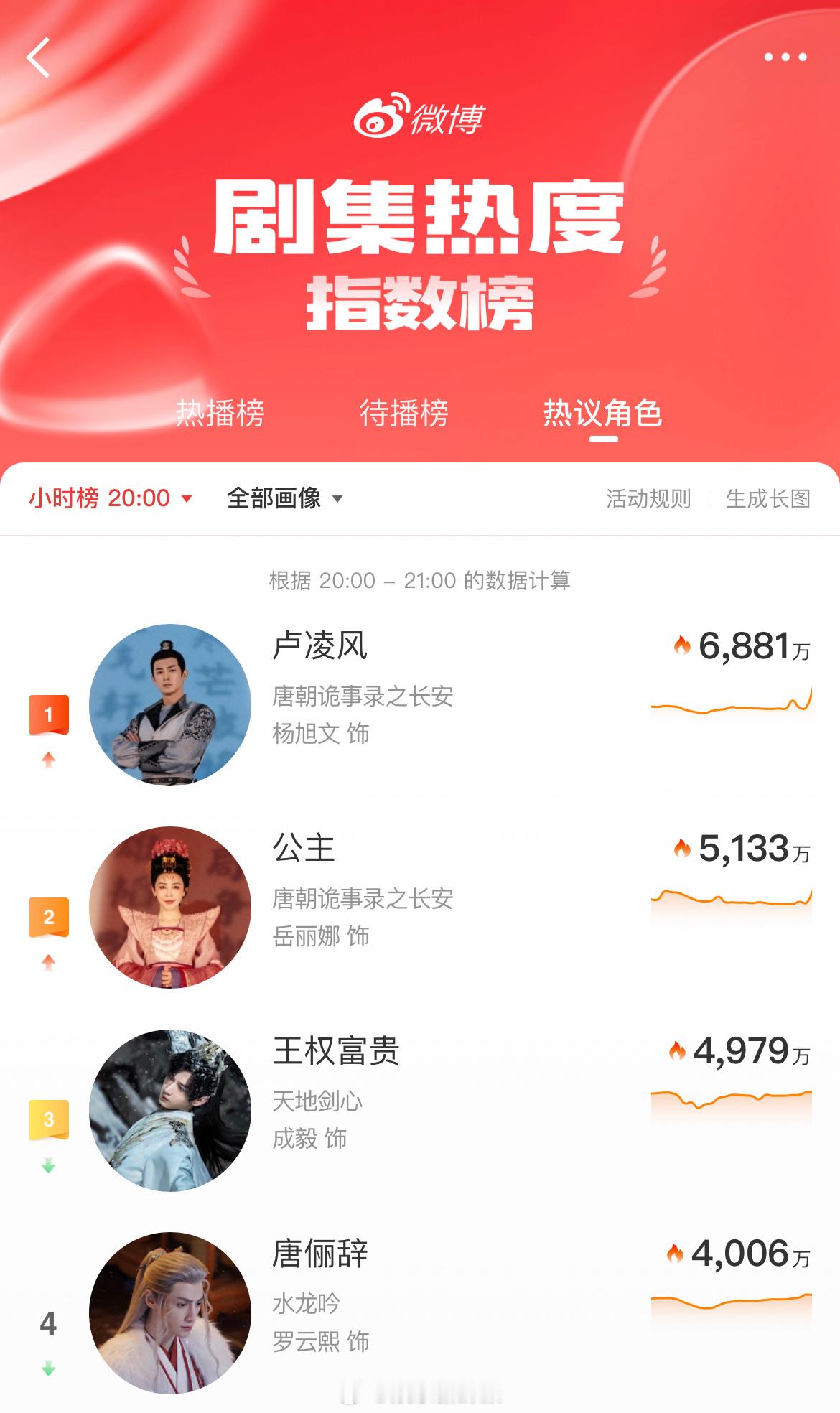中,卢凌风 角色热度登顶15小时,不愧是中郎将就是牛,快来继续带话题安利唐诡,助