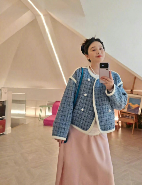 阚清子孕晚期对镜拍,看得出来状态很好,这肚子也不是很显,感觉明星生孩子都跟玩似的