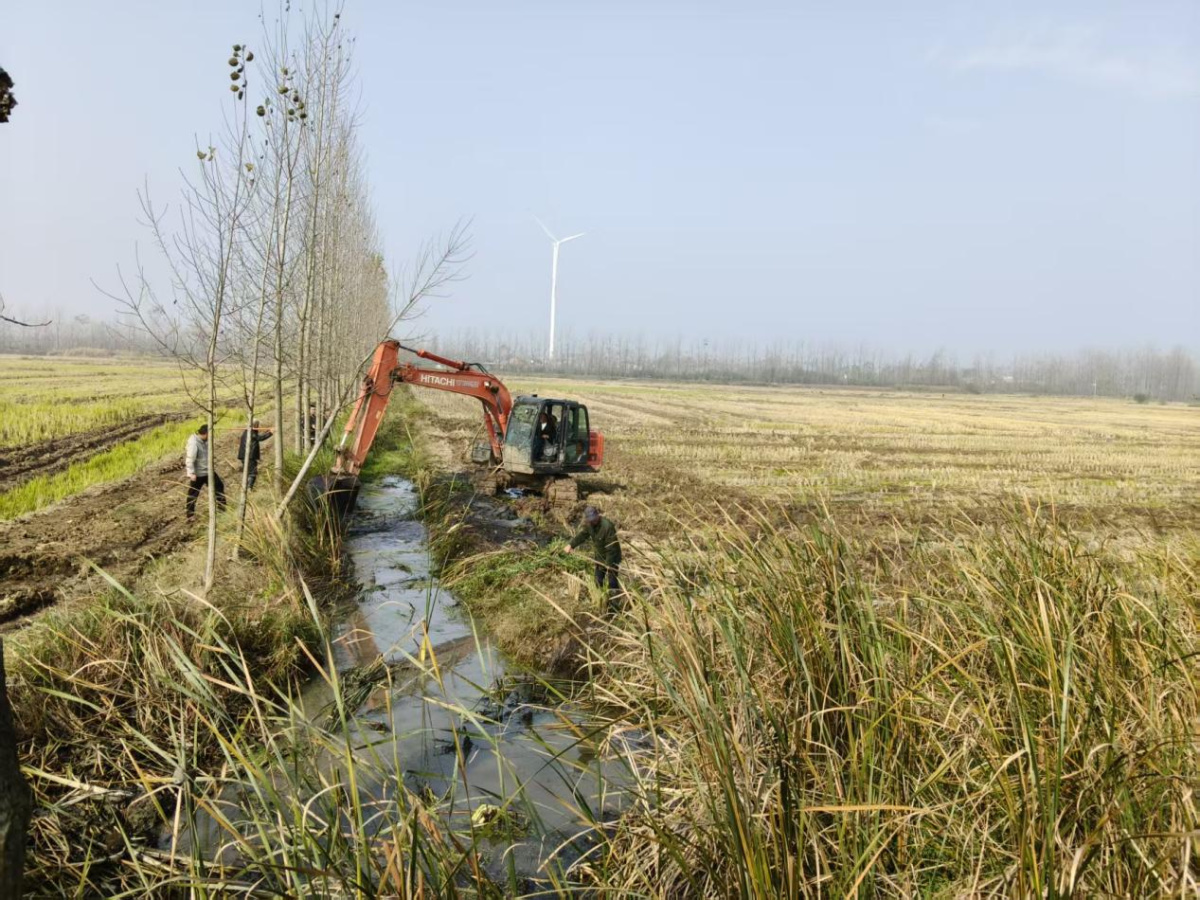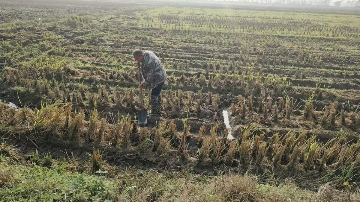 11月9日起,天气开始放晴,根据天气预报显示,未来15天内天气保持晴朗,往流镇即刻组织人员、机械,抢抓时机,坚持因地制宜、分类施策,以墒情为主线,做好精细整地。在童新村的低洼地块,农户们经镇党委、政府和童新村党支部的积极动员下,纷纷行动起来,疏通地头沟、田间腰沟、地外排水渠,构建起畅通的排水系统。白湖村的田块土壤水分严重饱和,农户们采用“深沟沥水”的方法,在田间开挖深度大于30厘米的深沟,让耕层水分向下渗透、向空气中加速蒸发。而在陈族湾部分积水严重的地块,则用大型机械挖沟和水泵抽离等方式进行排水。田间地头,机械轰鸣不断,农户们神情专注,仔细用心的整理田块,被积水覆盖的农田逐渐裸露出来。