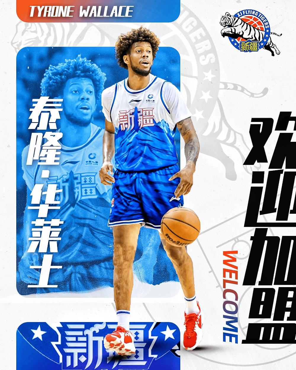 “新疆广汇篮球俱乐部已与外籍球员泰隆·华莱士完成签约。待我俱乐部向CBA联赛正式报送注册材料并经审核、公示通过后,泰隆·华莱士将代表新疆伊力特男篮参加2025-2026赛季CBA联赛。