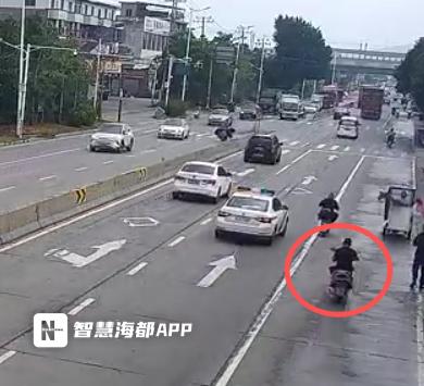 福州闽侯县公安局祥谦派出所民警黄见斌驾车途中与路边一男子(画圈处)短暂对视