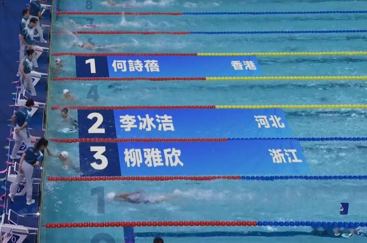 全运会女子200米自由泳决赛太刺激了! 香港队何诗蓓直接在这个项目里“杀疯了”, 决赛里全程咬着节奏游, 最后触壁时直接把河北队的李冰洁甩在身后, 稳稳拿下冠军! 看最终排名板, 何诗蓓是第1名, 李冰洁紧随其后排第2, 浙江队柳雅欣拿到第3。 谁能想到在李冰洁的强项200自里, 何诗蓓能突然杀出重围夺冠? 这波泳池里的逆袭, 属实是全运赛场又一个让人拍案的意外惊喜!