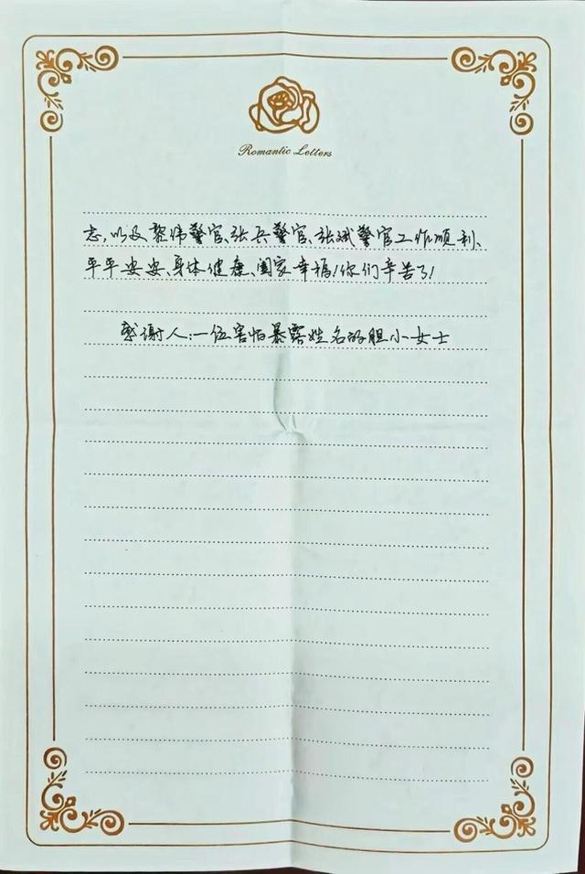 为表达谢意,货款退回后,张女士专程来到达贝派出所,将一面印有“破案神速扬警威,执法为民铸警魂”的鲜红锦旗,连同那封亲手书写的感谢信一同交到了民辅警手中。鲜红的锦旗映衬着真挚的话语,不仅是对民辅警反诈工作的最大认可,更成为了警民同心、携手反诈的生动见证,也彰显了基层派出所守护群众财产安全的责任与担当。