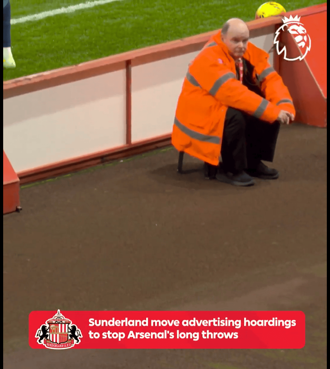 虎扑11月13日讯在上周末英超第11轮,桑德兰主场2-2阿森纳的比赛中,桑德兰将球场边的广告牌挪得离边线更近来“防守”阿森纳的大力手抛球。