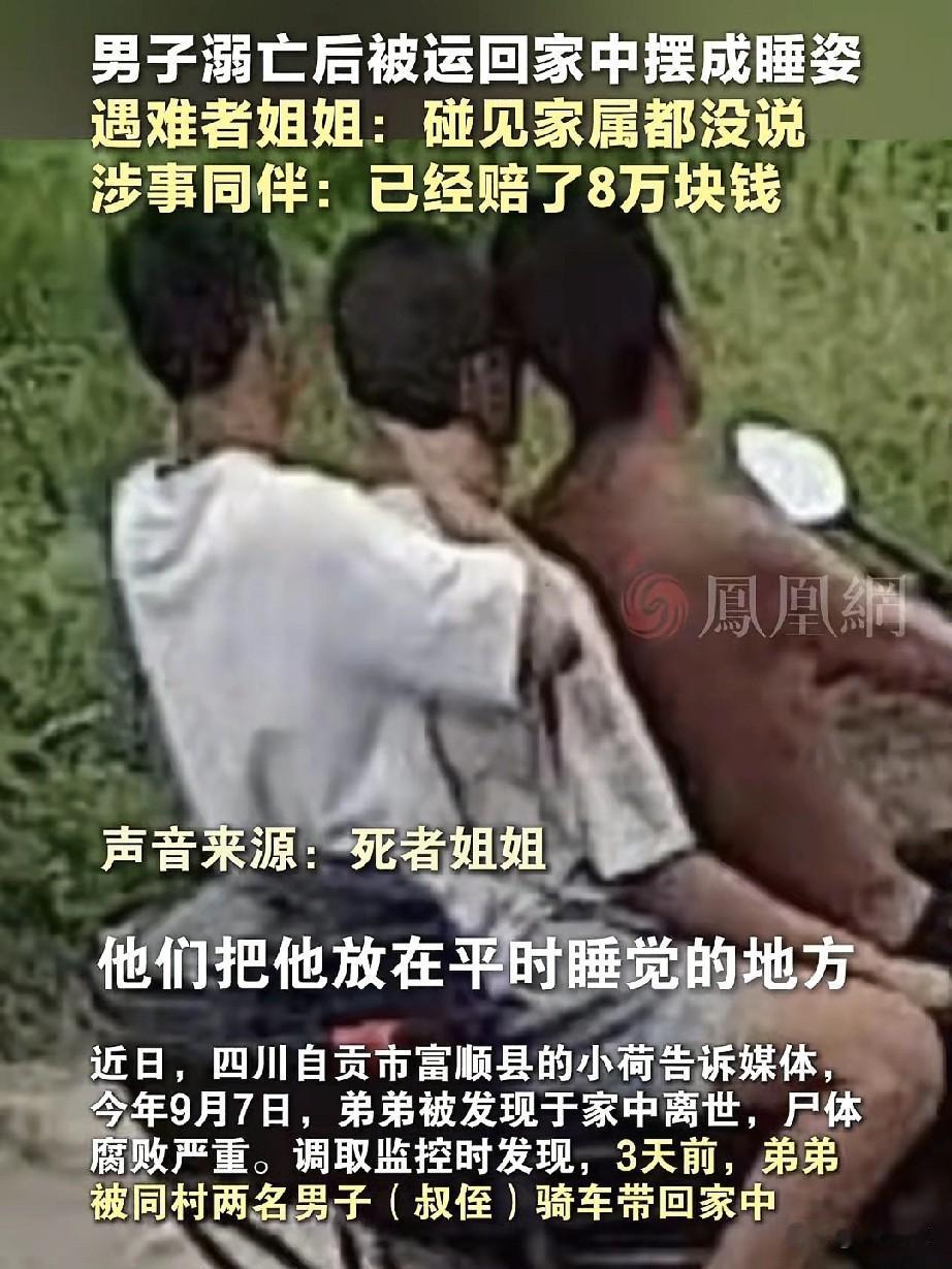 四川自贡,男子与同村叔侄一块去河里游泳,不曾想一头扎进水里溺亡了,同村的叔侄俩把男子拖到岸边后既没有报警,也没有通知男子家人,害怕担责的俩人骑着摩托车把男子送回其家中摆成睡姿,直到三天后尸体严重腐烂才被家人发现。男子家人报警后通过视频监控才发现叔侄俩的举动。而这些天里,叔侄俩还曾与男子的奶奶、叔爷等亲属碰面,却对这件事只字未提。 警方调查后认定小凯是意外溺亡,不予刑事立案。 经过调解叔侄俩赔偿了男子家人8万元丧葬费用,协议中注明,如果家属想进一步追究叔侄俩的责任,可通过法律途径解决。男子的家人疑惑,叔侄俩没有及时告知情况,私自处理遗体,导致家人三天后才在惨不忍睹的状态下见到男子最后一面,这样的行为难道不构成犯罪吗? 法律人士给出建议在现有的法律框架下,叔侄二人的行为很难构成刑事犯罪!
