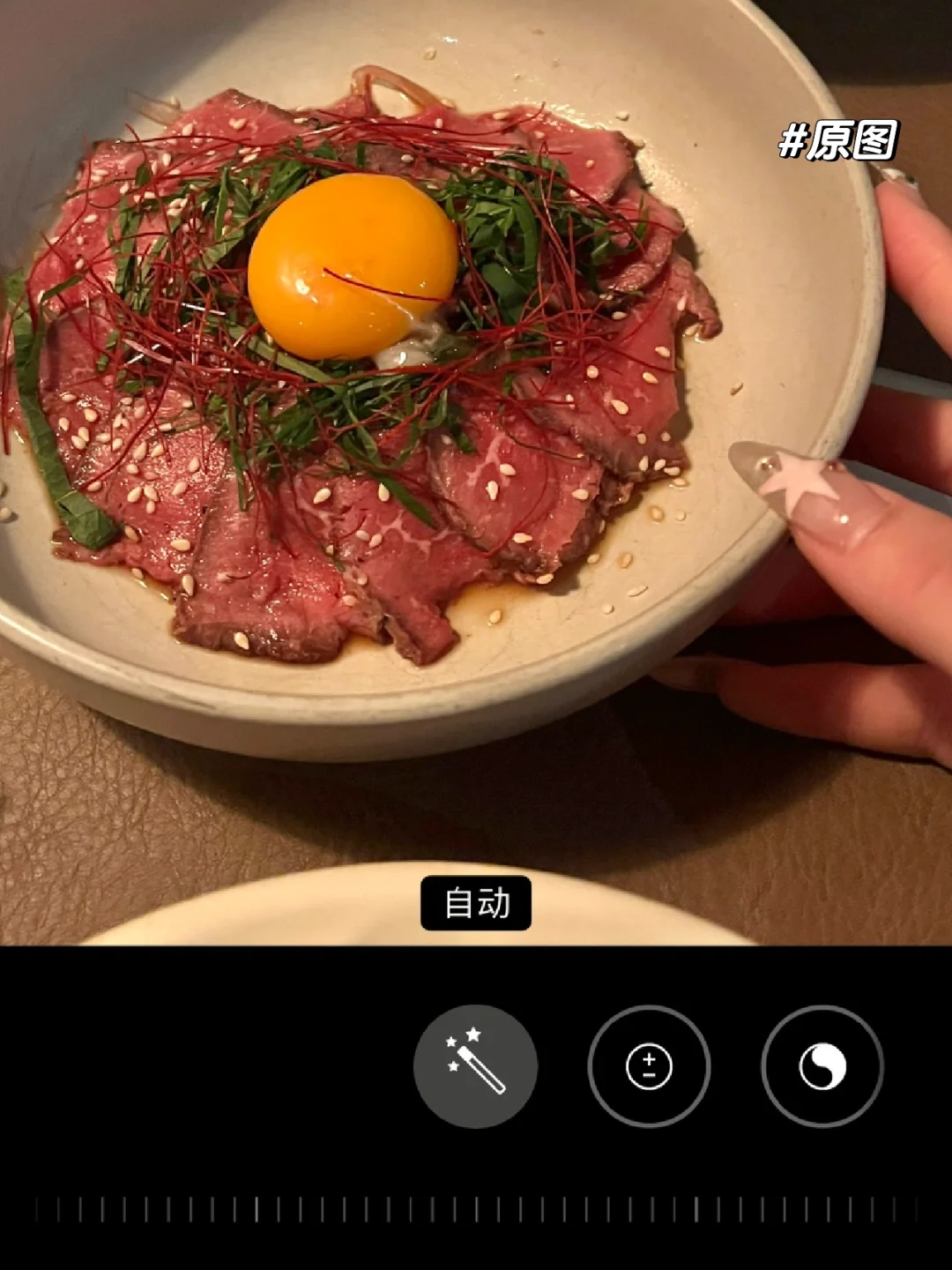 咩~我是小咩🛸 这样p美食太有氛围感拉⚡️暗调➕发光滤镜➕画质修复!yyds!一整个出片🍽️ . iPhone原相机调色: 曝光-15 高光-35 饱和度+15 自然饱和度-10 色调+18 锐度+67 画质修复:你我当年 打开app主页-选择2019版(超清晰)不够清晰的可以多修几遍!! . 这个滤镜尊滴爱了!太适合美食了!
